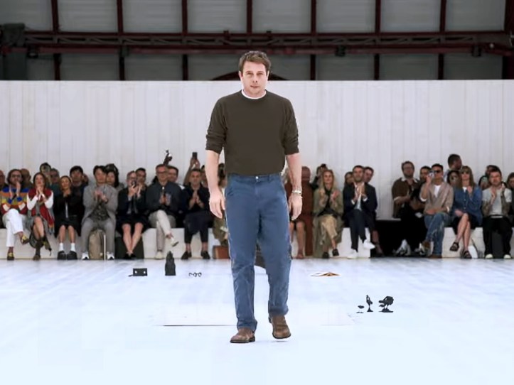 Jonathan Anderson taking the bow for his Loewe menswear spring/summer 2025 collection last July. Screen shot: loewe/YouTube