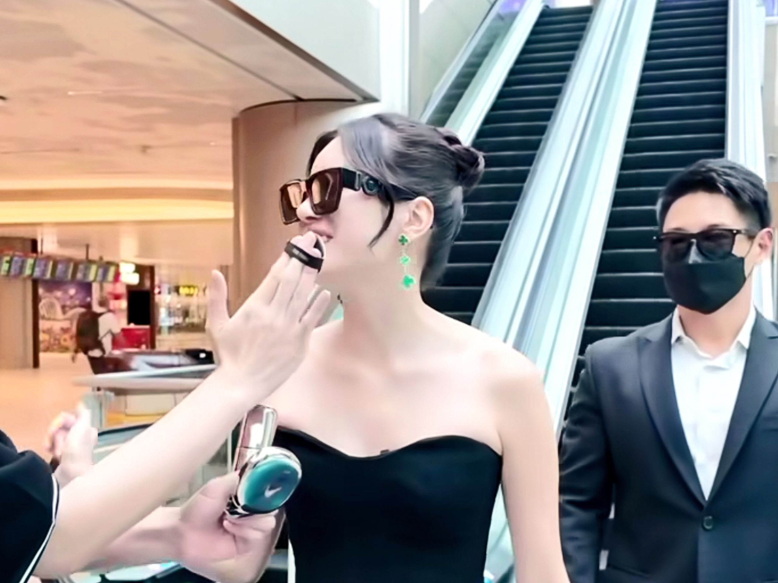 The influencer with her ever-present personal assistant looking on, even when she had her make-up touched up in the atrium of Suntec City