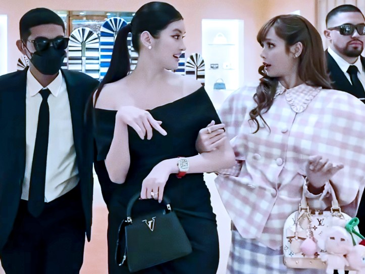 Talking about Lisa, she was not omitted from Ms Sangchaiphum’s picture of incredibly wild spending fun. To prove that Ms Sangchaiphum is so much a major online star that she could even attract the biggies, the influencer enticed Lisa to partake in one of her shopping sprees. Shared on IG early this month was the two women, one taller than the other, enjoying some performative retail therapy in—where else—a Louis Vuitton Bangkok store. Their enjoyment was underscored by truly exaggerated moves, with Lisa arching her body so preposterously, she could have been auditioning for an appearance on Saturday Night Life, not White Lotus Season Three. The Moonlit Floor (Kiss Me) singer was dressed in LV, and even made sure viewers noticed her LV bag, the rare Alma BB, first shown in the LV spring/summer 2003 collaboration with Murakami, and, now, hung with at least three Pop Mart’s Crybaby plushies.