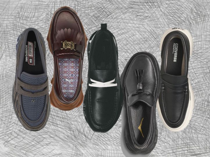 From left New Balance 1906L, Paloma X Puma Nitefox, Mizuno Wave Prophecy Moc, Hoka Speed Loafer, and Converse All Star Trekwave Loafer. Product photos: respective brands. Collage: Just So