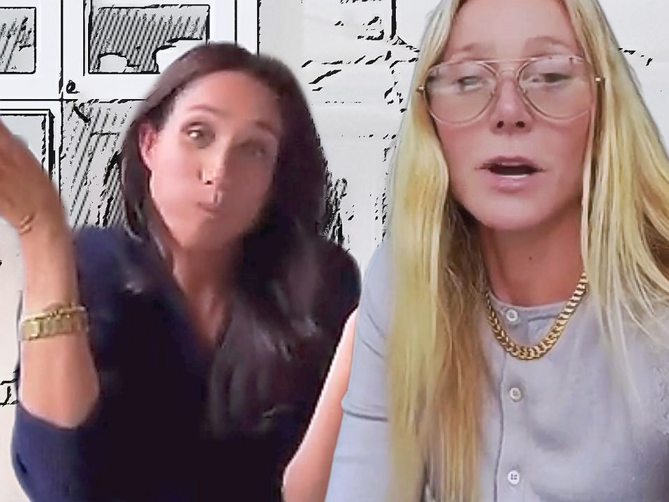 Meghan Markle and Gwenyth Paltrow appearing together in a reel on YouTube. Screen shots of the women: gwenythpaltrow/Instagram. Illustration: Just So