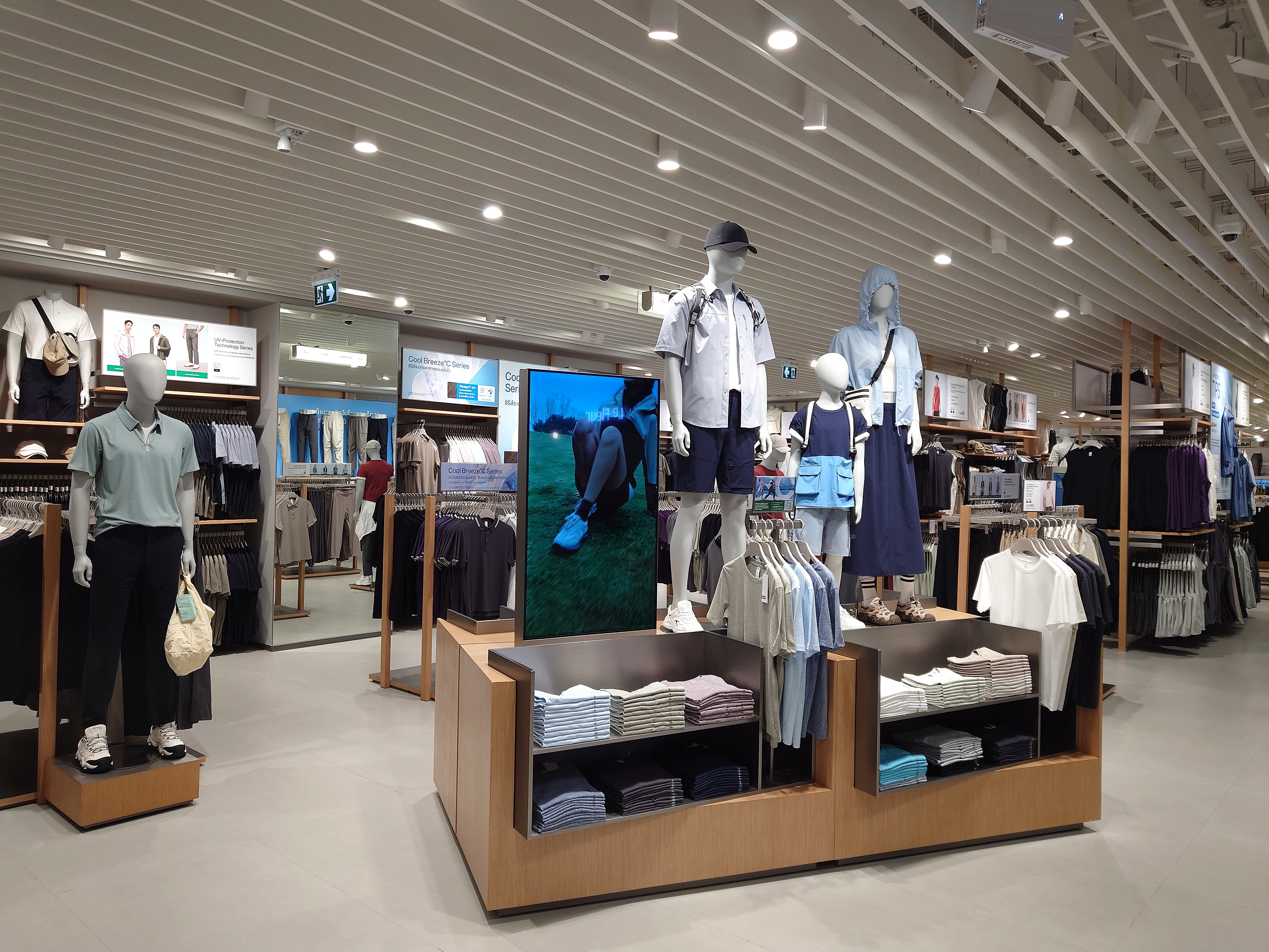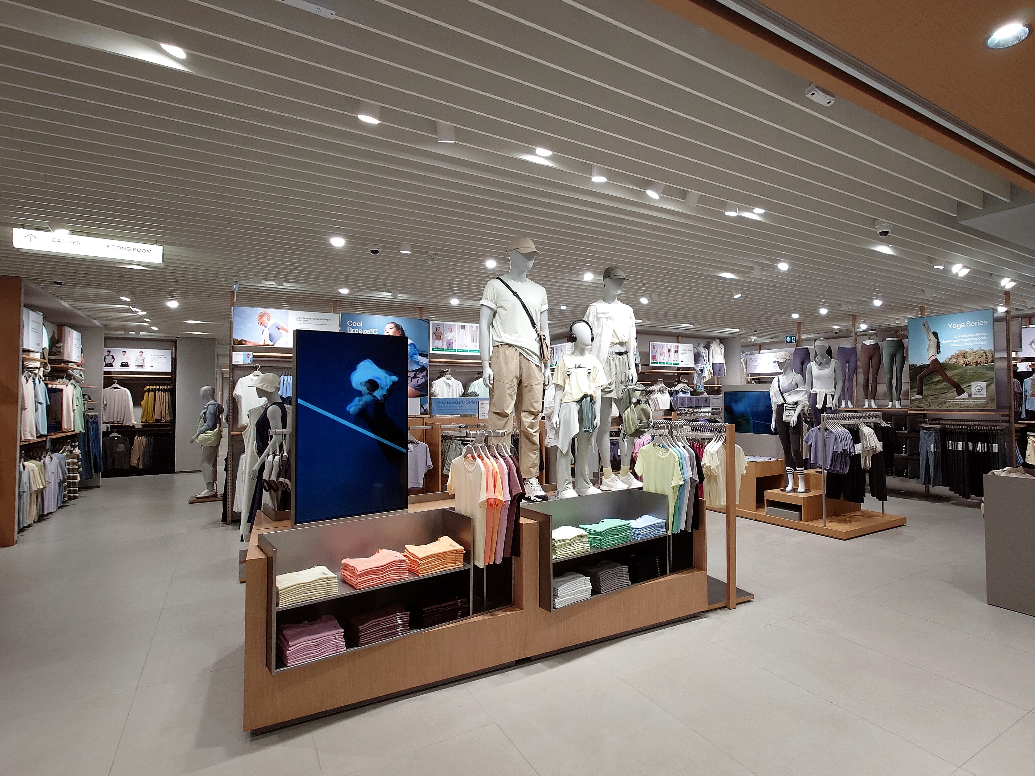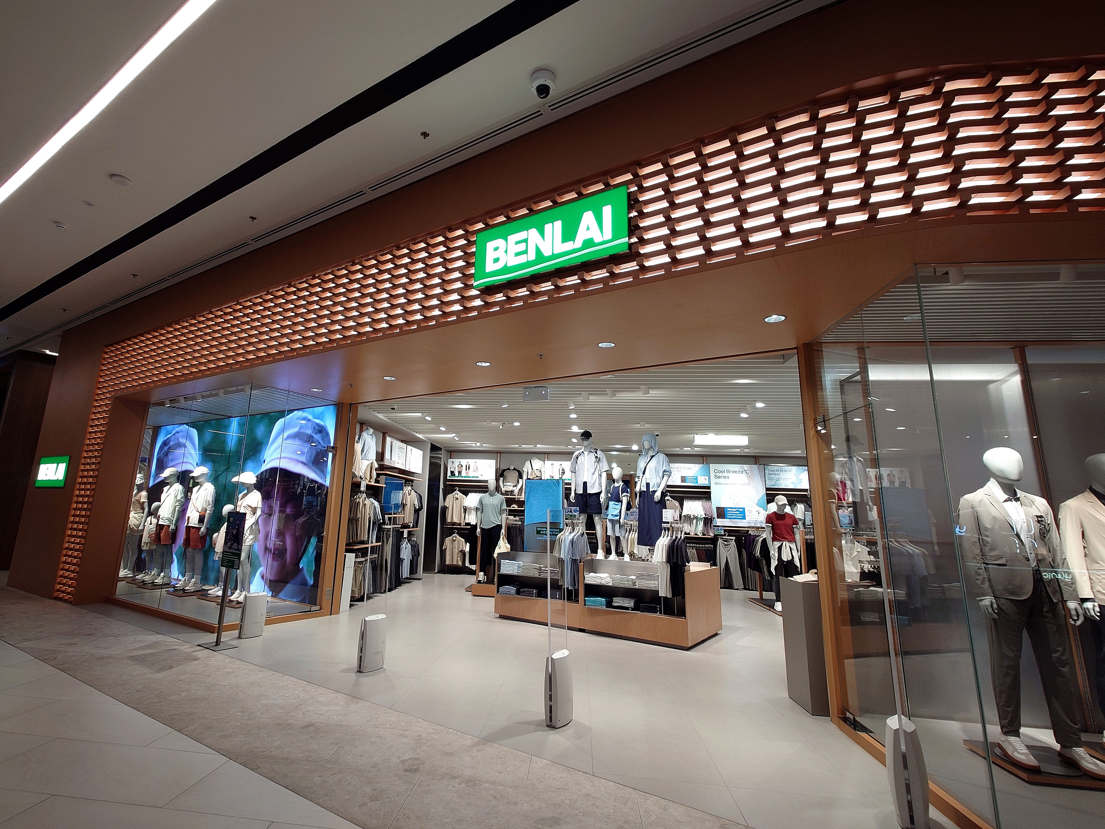 As of late August 2024, Benlai had 16 stores in major Chinese cities, including Beijing, Chengdu, and home Guangzhou. FMG chairman and CEO Leo Li told the Thai media that the company has set a target to expand to more than 200 branches worldwide—including SEA—within the next 5 years. There is no mention yet that Singapore will welcome a Benlai store soon. Despite its clearly Chinese-sounding name (as opposed to, say, Urban Revivo) and a curious green box-logo that is somewhat reminiscent of Benetton, Benlai, in terms of interior, is a cross between Lululemon and Japan’s Uniqlo, but with far less crammed layout than either of them. The store is zoned into areas for men, women, and kids.