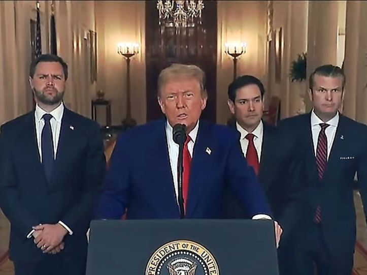 Mr Trump did not make his speech by appearing alone. He was accompanied by his V.P. JD Vance, secretary of state Marco Rubio, and secretary of defence Pete Hegseth. All appeared before the camera lens identically dressed: the dark suit, the white shirts below and the vertical line of power—the tie, all red, except Mr Vance’s blue, unfortunately, a lame attempt at projecting calm. Their cohesion of dress looked to be a president saying that the military action was a joint decision, a boys’ club effort. The identical turnout reinforces the idea of an integrated, disciplined, and unified team, even if it’s one that agreed to Israel outsourcing their war effort to them. It projected a triumphant quartet to both domestic and international audiences.