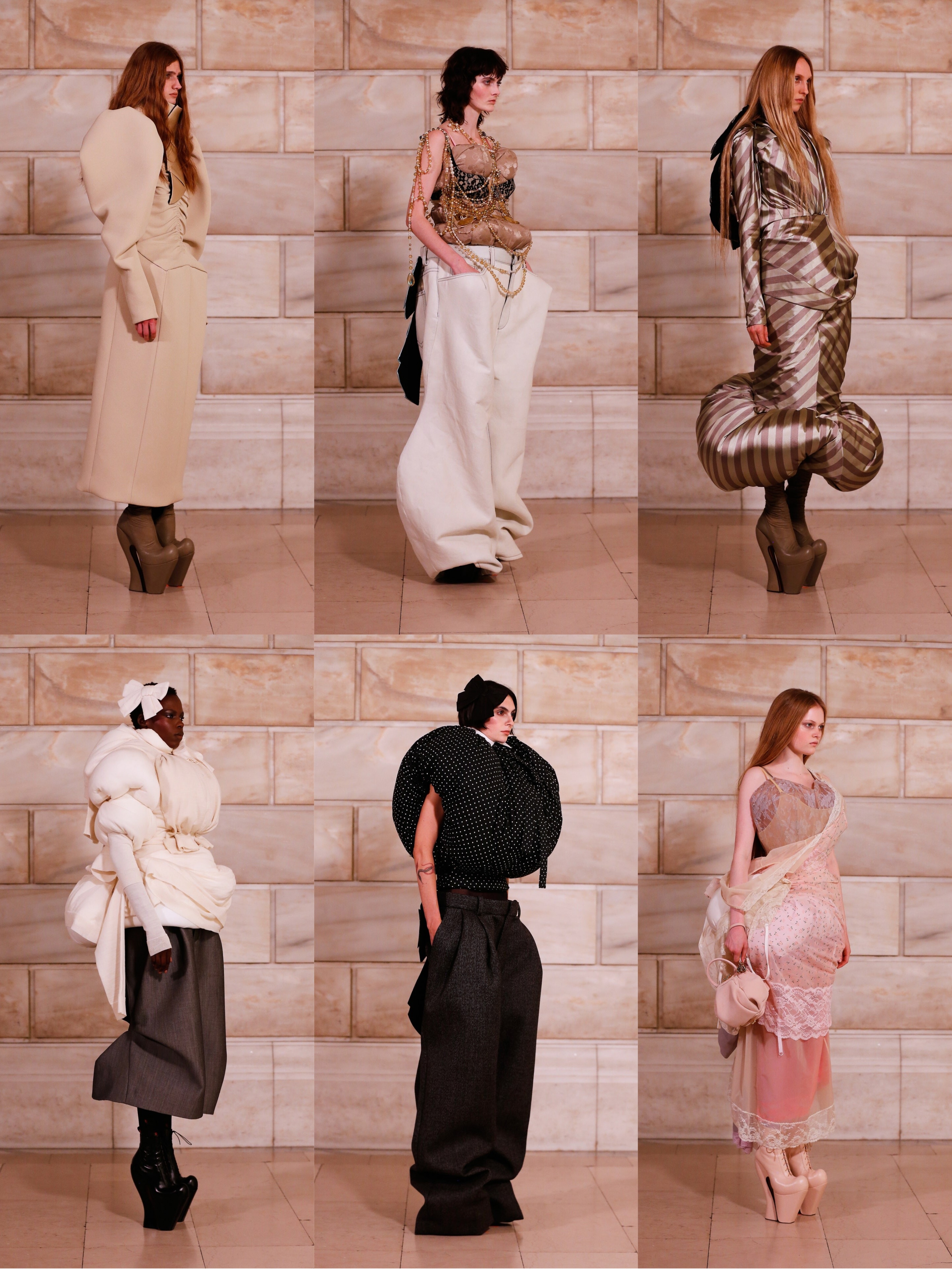We’re always curious to know what a Marc Jacobs mood board looks like. His latest show, the autumn/winter 2025, is, as usual, staged later than anyone else, and over sooner than any other presentation. And just as usual, we saw the exaggerated, sculptural, and bulbous proportions. The overarching theme has been explored before—from the cocoon shoulders to distended upper bodies to balloon hips to inflated skirts and sleeves. Yet, this season, he pushed the boundaries further, with a model now sporting two sets of breasts, not to mention what would commonly be referred to as a ‘muffin top’ mid-section. Conventional beauty redefined? Or unconventional rehashed? What would Marc Jacobs do if there were no designers such as Rei Kawakubo, Georgina Godley, and Vivienne Westwood who came before him?