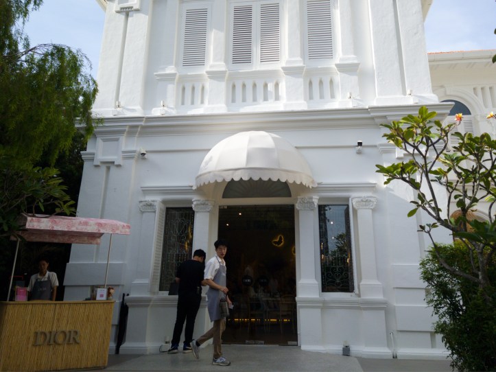 Twenty five minutes after we were seated, the heat became too much to bear. We wondered if the high indoor temperature was deliberate so that we would not be seated to the last minute of the alloted 90-minute dining limit. We asked for the bill and it was brought to our table by an ebullient lass. She asked if we enjoyed our meal. We did not lie; we also expressed our shock at the debilitating heat. She told us, she too couldn’t deal with it. It was, in fact, so bad for her that she had to eventually cut her long hair short—to above her shoulders that we saw her with. We expressed our disbelief. And she smiled good-naturedly. She too understood the deep irony that this pop-up and café, touted as an immersive experience felt like a masterclass in enduring the heat. Outside the cafe, it was considerably cooler even with the sun still blazing. Now, the entire front garden of the Macalister Mansion was as busy as a fairground. Many people, dressed to the nines, were carrying their Lady Diors, their Saddle Bags, and their Book Totes. This was the social highlight of Penang and the state’s moment in the Dior spotlight.