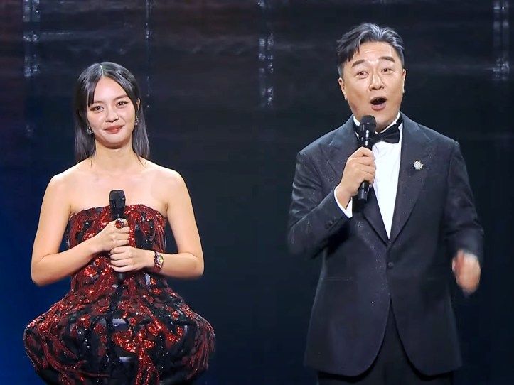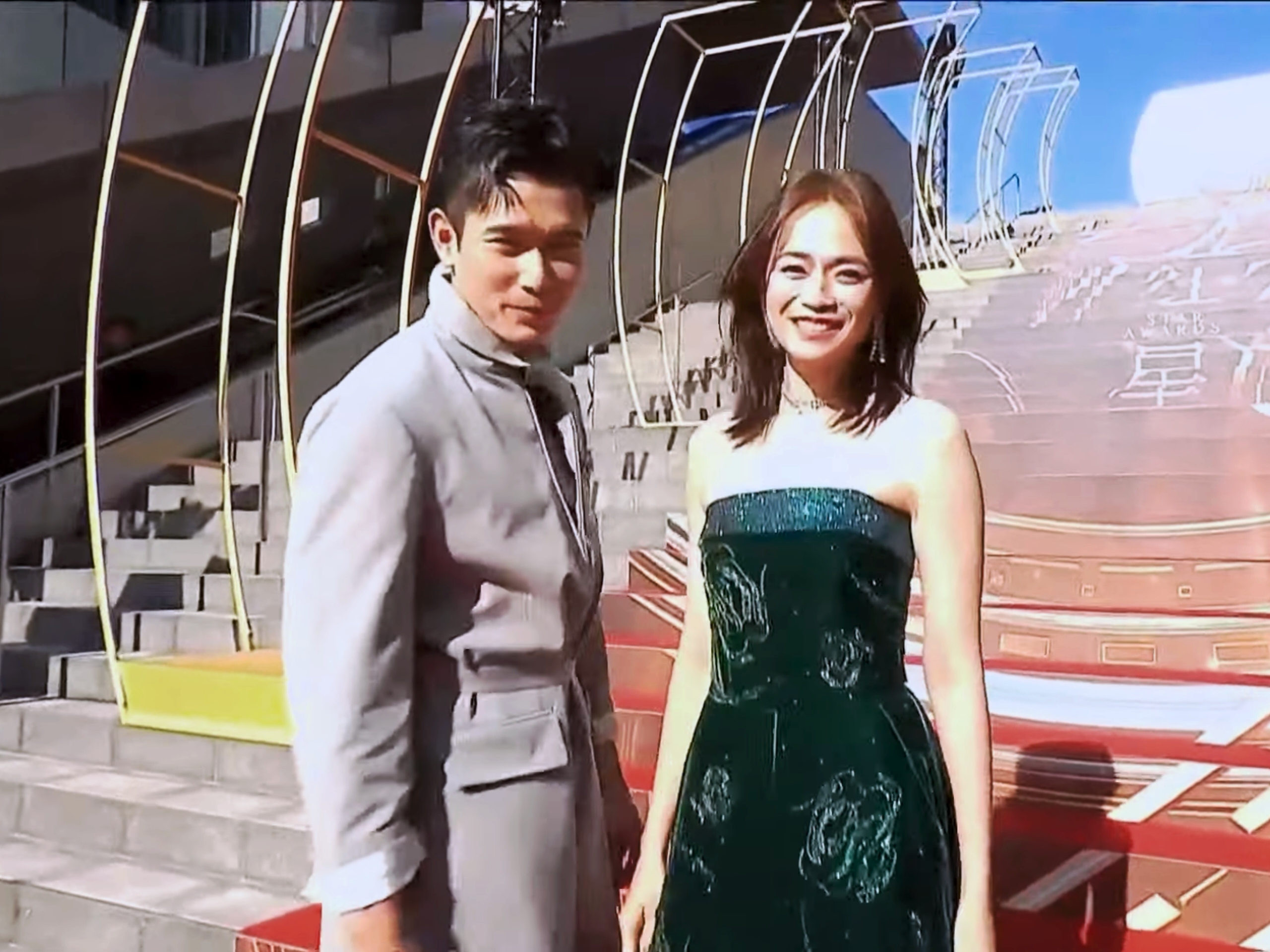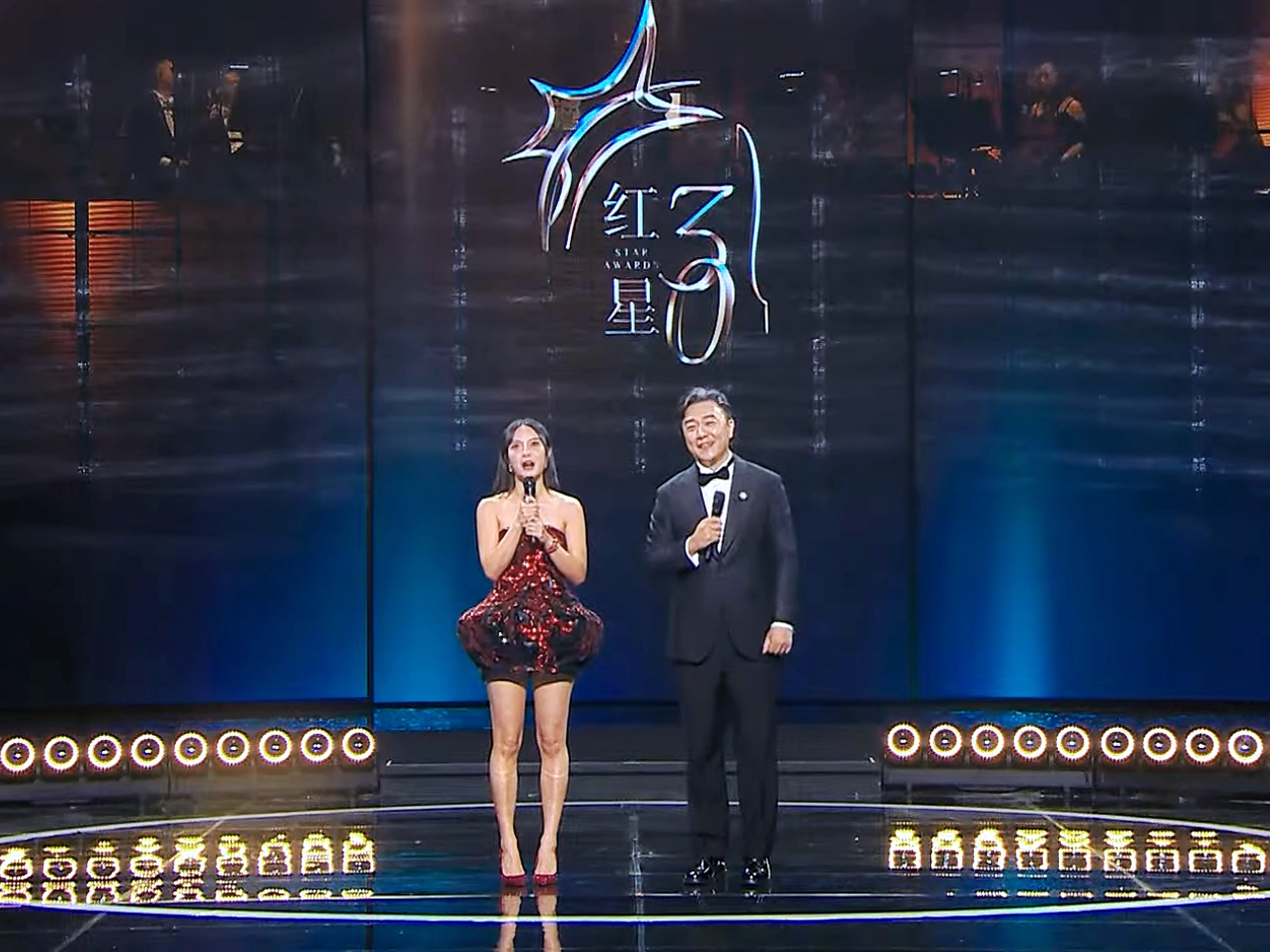 Similarly, Ms Ng’s fashion pick for her hosting debut was nothing short of a spectacle of misjudgment. Rather than the generally graceful gowns that her predecessors wore, Ms Ng chose a Frederick Lee beaded and embroidered tube-dress with a short skirt in the shape of a 7th lunar month lantern. While likely intended to convey youthful exuberance, it instead rendered her foolish and utterly lost amid the other outfits of fellow stars, especially her co-winners of the award for the Most Popular Female Artistes. The skirt fortunately cast shadows on her thighs (they made her look like she was wearing bicycle shorts), providing a modicum of modesty as her mother was in the audience, but it cast her status not just as a novice host, but as a truly befuddled fashion adopter for such a grand event. To appear a serious host, she adopted a stiff posture and an curious half-an-arm’s-length gap from Mr Guo throughout the evening, amplifying the awkwardness, making it seem as if she was maintaining composure for her frock, rather than wearing it to look collected. The rigidity was, however, unbuckled, when she, responding to an awardee’s name being announced, scream into the mike, “my friend!”
