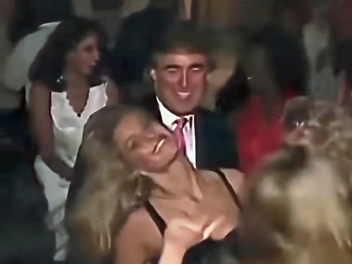 The camera did not dwell on the dancing lasses long. It cut to two smiling men on the periphery, seemingly chummy in their interaction and ageless in their singular libido-satisfying pursuit. Donald Trump, ever the same, his signature coif a gravity-defying constant, only then, it was not the “bleach blonde” that it is now. And beside him, a more vigorous Jeffrey Epstein, still in the prime of his copulative years. His strong jaw looked like it could crack Brazil nuts; his relaxed posture a precursor to the notorious swagger. The two of them, in that moment, with women of undulating torsos in the foreground, were a frozen testament to appetites that, for one of them, would calcify into infamy, and for the other, would merely mutate into a political platform. Or worse, in the wake of “grabbing” women’s genitalia, tolerance for “locker-room talk”.