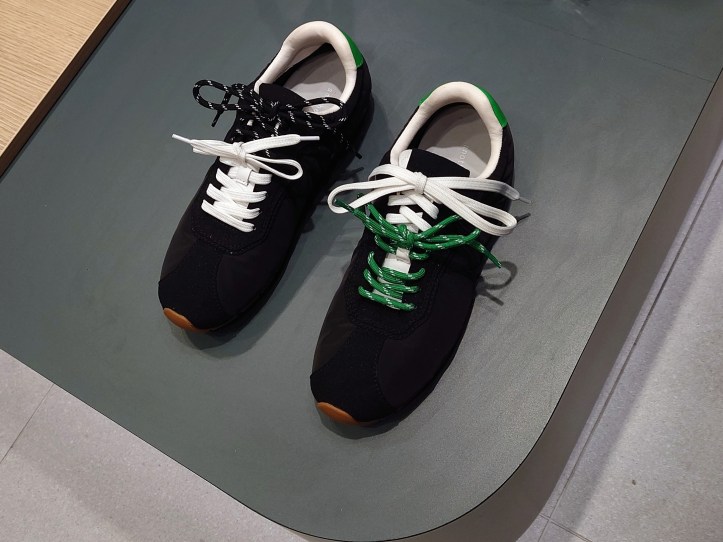 Miu Miu, in fact, understood the need for collaboration to create something authentic, working with New Balance to ensure that their distinct offbeat sensibility didn’t simply jump the queue. But for brands that choose to arrive at the party belatedly and alone, their message is singular: “We, too, have swallowed Miu Miu’s healthy dose of peculiarity.” While this behavior is understandable from a fast-fashion giant like Shein, it’s more telling when other, equally responsive brands do it. It shows that in the sneaker business, operating in the grey area of “design inspiration” is often a traipse in the park. Shoelaces are, after all, the unsung heroes of sneakers. Employing them in contrasting styles requires little more than a trip to the haberdashery, a minimal fuss with a negligible financial outlay. Simply lace it up, and the job is done.