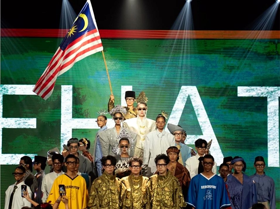 The latest koleksi (collection) was again associated with merdeka, a foundational concept that underpins Malaysian national identity that Mr Tan had previously explored in his 2024, also during KLFW of that year. But this time, he went for the jugular: In the finale, the models gathered in front of the backdrop emblazoned with his brand in a font size larger than those used to announce the death of a head of state. The youngsters took up a pyramidal formation, with one emerging at the very top to wave the Malaysian flag. It immediately brought to mind the iconic finale in Les Misérables, where the cast came together to chorus the emotive ‘Do You Hear the People Sing?’ The character Enjolras, leader of the student revolutionaries, stood on top of a similarly-formed barricade, waving a flag. The scene is a symbol of unity, defiance and willingness to fight for a cause. What Mr Tan and his motley group was jousting for was unclear. Perhaps it was just to mimic the Tugu Negara (national monument)?