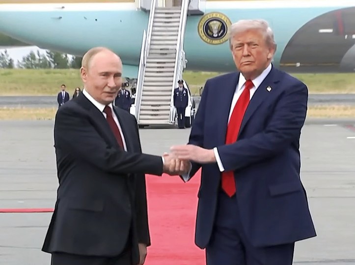 It’s been described as a “high-stake moment on the geopolitical stage”. Yet, it was a low-impact date of no real consequence. In Anchorage, Alaska hours ago, Donald Trump and Vladimir Putin each flew in on their respective presidential planes in a highly choreographed arrival at the Joint Base Elmendorf-Richardson and greeted each other with a handshake on the red-carpeted tarmac. They appeared delighted to see each other, like long-lost bros, Mr Trump even clapping as his Russian guest, a war criminal*, approached him. This was Mr Putin’s first steps—and they were brisk—on Western ground after his attack on Ukraine in 2022. The welcome was clearly dressed for broadcast. This was not going to be a quiet summit. This was a preface to the ensuing diplomatic theatre.