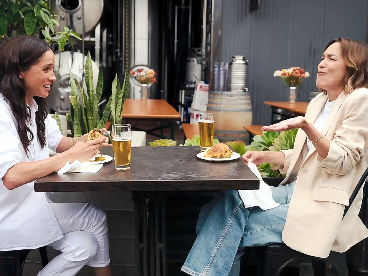 Ms Chang had asked her guest: “Is there an inherent tension in trying to be relatable while also being a duchess?” Her reply was so well-rehearsed, you could almost hear the production directions. “No… I’m just being myself. So I think, probably it was different several years ago, where I couldn’t be as vocal… Let’s be honest, that was not very myself. I hadn’t seen pantyhose since movies in the ’80s, when they came in the little egg.” The Montecito matron was referring to L’eggs, the hosiery brand launched in 1969 by the T-shirt and underwear maker Hanes; she was also saying that she is the product of the present, when women let their legs go undressed. She added, “but that’s a silly example, but it is an example of when you’re able to dress the way you want to dress, and you’re able to say the things that are true, and you’re able to show up in the space really organically and authentically.”