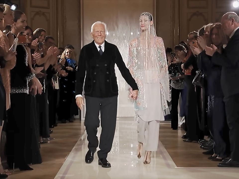 Mr Armani’s last public appearance at the Armani Privé spring/summer 2025 show in January this year. Screen shot: armani/Facebook