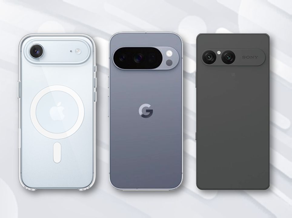 Apple iPhone Air versus Google Pixel 10 Pro versus Sony Xperia 10 VII. Product photos: respective brands. Illustration: Just So