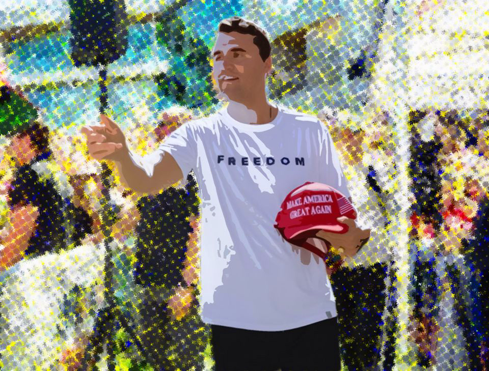 Charlie Kirk at his ‘American Comeback Tour’ on the campus of Utah Valley University. Photo: The Salt Lake Tribune via Getty Images