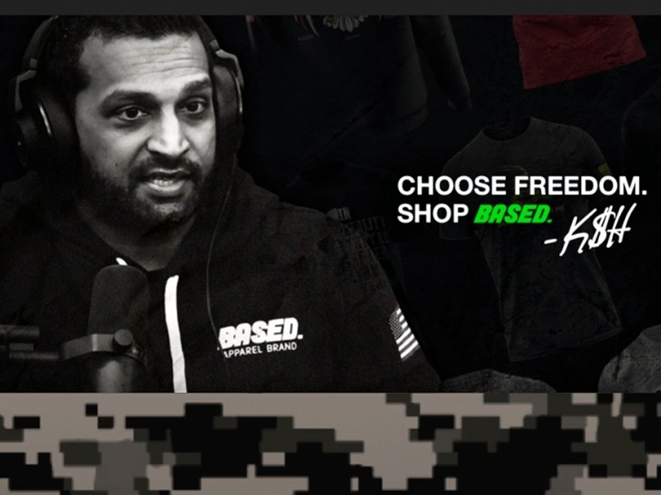 Kash Patel promoting his own brand. Screen shot: Based Apparel website