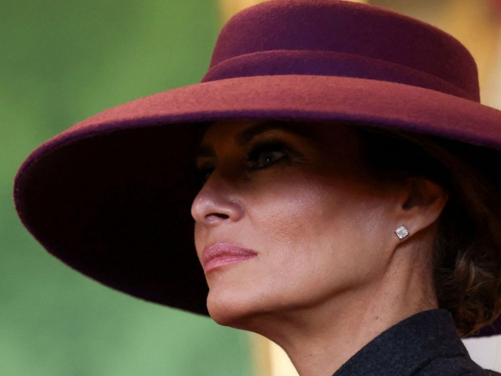 A hat is not just a headwear; it can be a portable alibi for a face that has seen too much and wholly irresistible to visceral loathing. It certainly is in the case of Melania Trump when she turned up at Windsor Castle yesterday to meet the British royal family. You did not quite see her; you saw the hat, a structured chapeau with a wide, down-turned brim in the colour of prune juice pretending to be Fanta grape. It had a crown of a boater and the brim of a 斗笠 (douli) or a farmer’s hat, especially a style used in Vietnam. In photos circulating online, much of her face was obscured, even her already smokily made-up eyes. Princes of Wales Catherine appeared taller than Mrs Trump, even when both women were in stilettoes so high they are uncommon these days, and when she spoke to FLOTUS, she had to look downwards at an obstructive brim the equivalent of a frown.