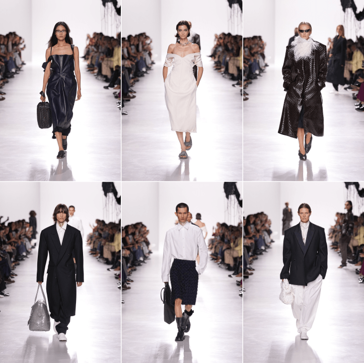 More than just the optic signatures, there was also what Ms Trotter is known for: tailoring,. This was well expressed during her tenure at the British brand Joseph (that unfortunately was shortlived here). Her Bottega Veneta showed an identifiable mastery of cut and execution, particularly evident in the precision of the wide-shouldered coats and defined-waist blazers; yet, in a season where exaggerated proportions are still ubiquitous across the major European houses, the volumes felt somewhat overdone. They positioned the silhouettes not as a visionary counterpoint to the fashion moment, but rather as a convenient echo of it, despite the excellence of their construction.
