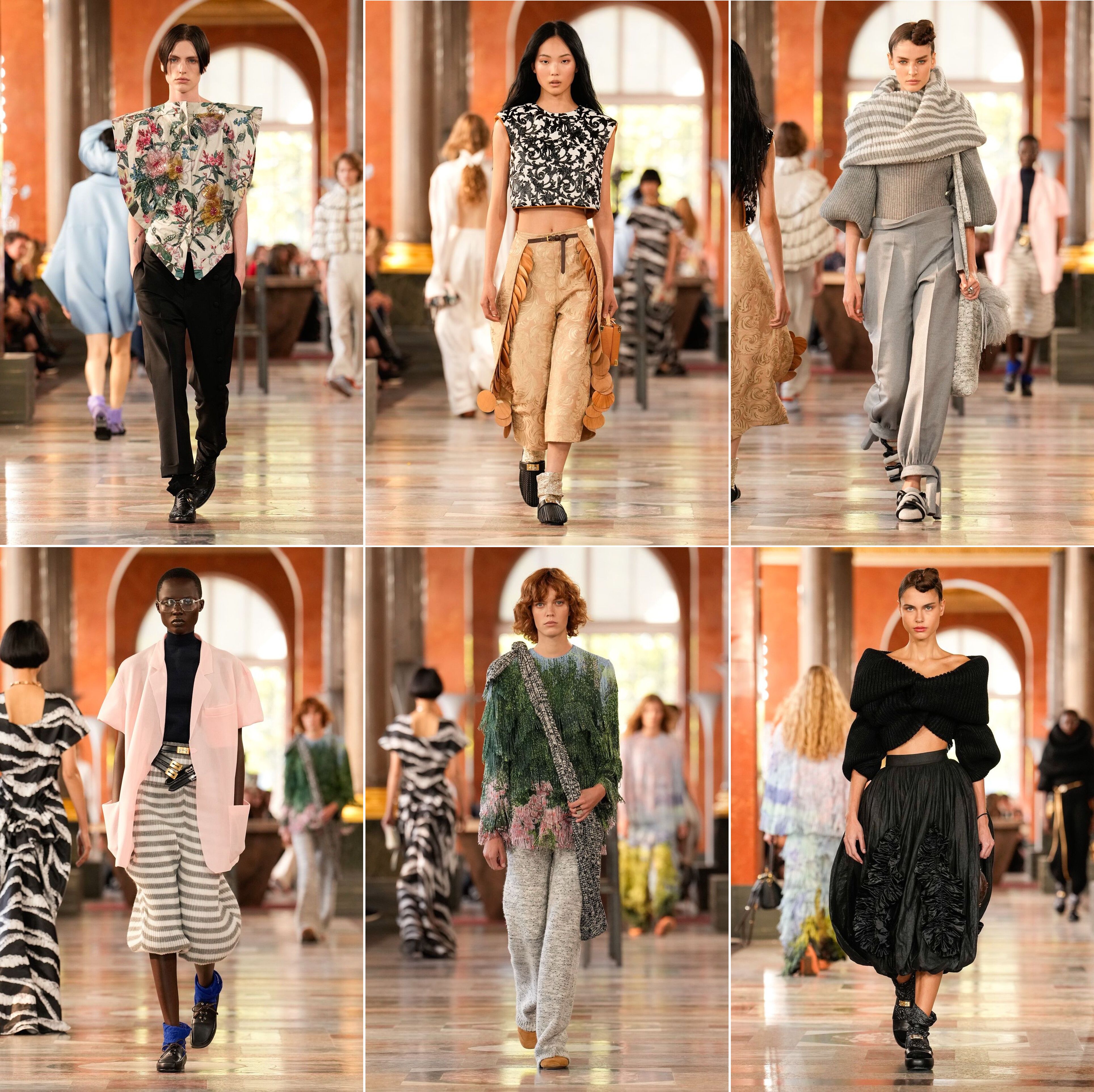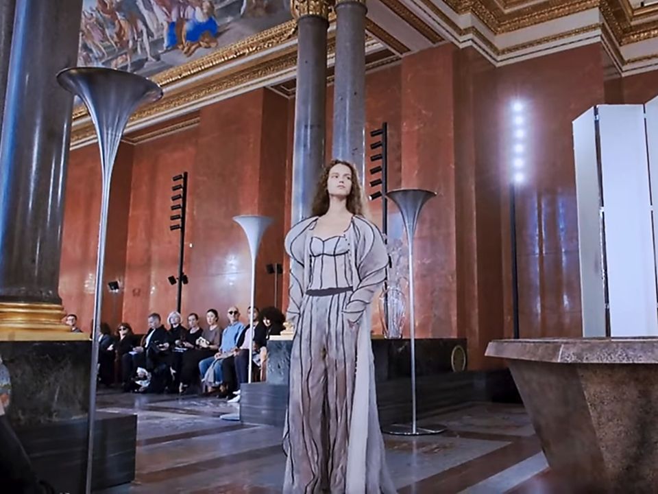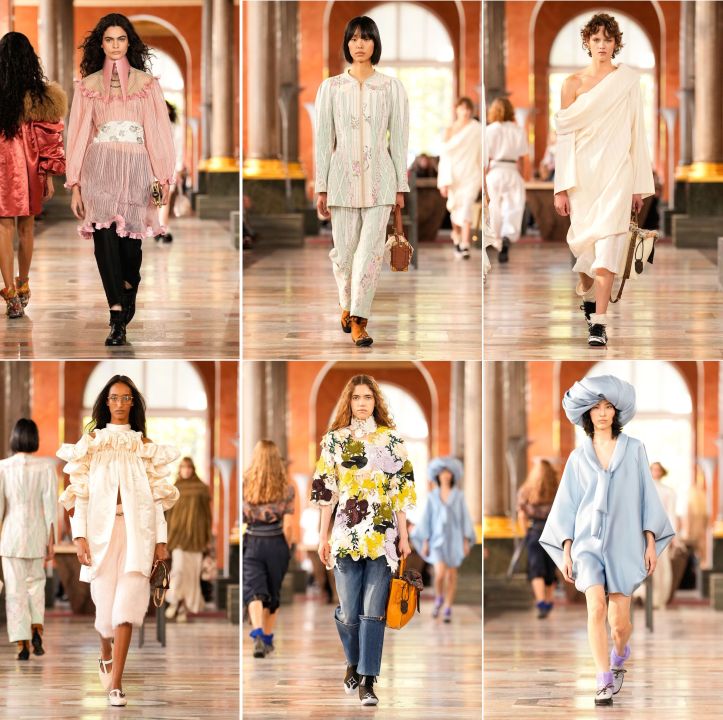 Mr Ghesquière’s runway has often been a living collage of centuries. You don’t always know where one begins and another ends. This time, there was purportedly “Renaissance power-dressing” (we did not detect that) and “Ottoman decadence” (which we discerned). The thing is, where did all that oscillation bring us? To the same lavish perch, only more ridiculously dressed. We have always been partial to Mr Ghesquière’s work, but this time, it was too rich in questions and too poor in answers. His inspiration is rarely simple or linear and his layering of references can make a single garment feel like it has too many competing ideas. Take the diaphanous, pink tunic-dress. It has a sharp, elongated collar that look like the neck sprouted fangs. These crowned the ruffled and pleated garment which was belted with a wide sash in a contrasting fabric of indeterminate print. Classic clouding of clarity.