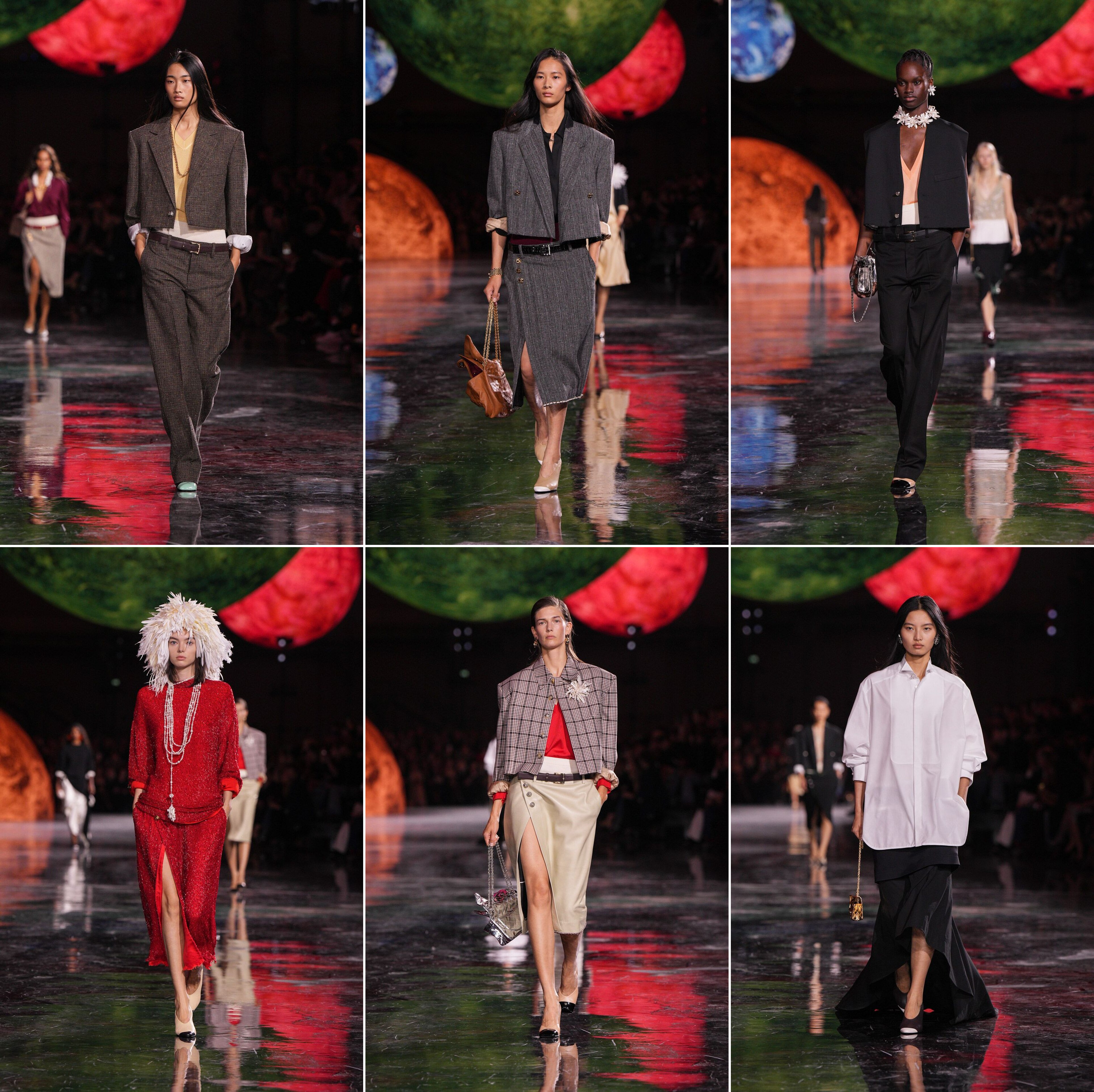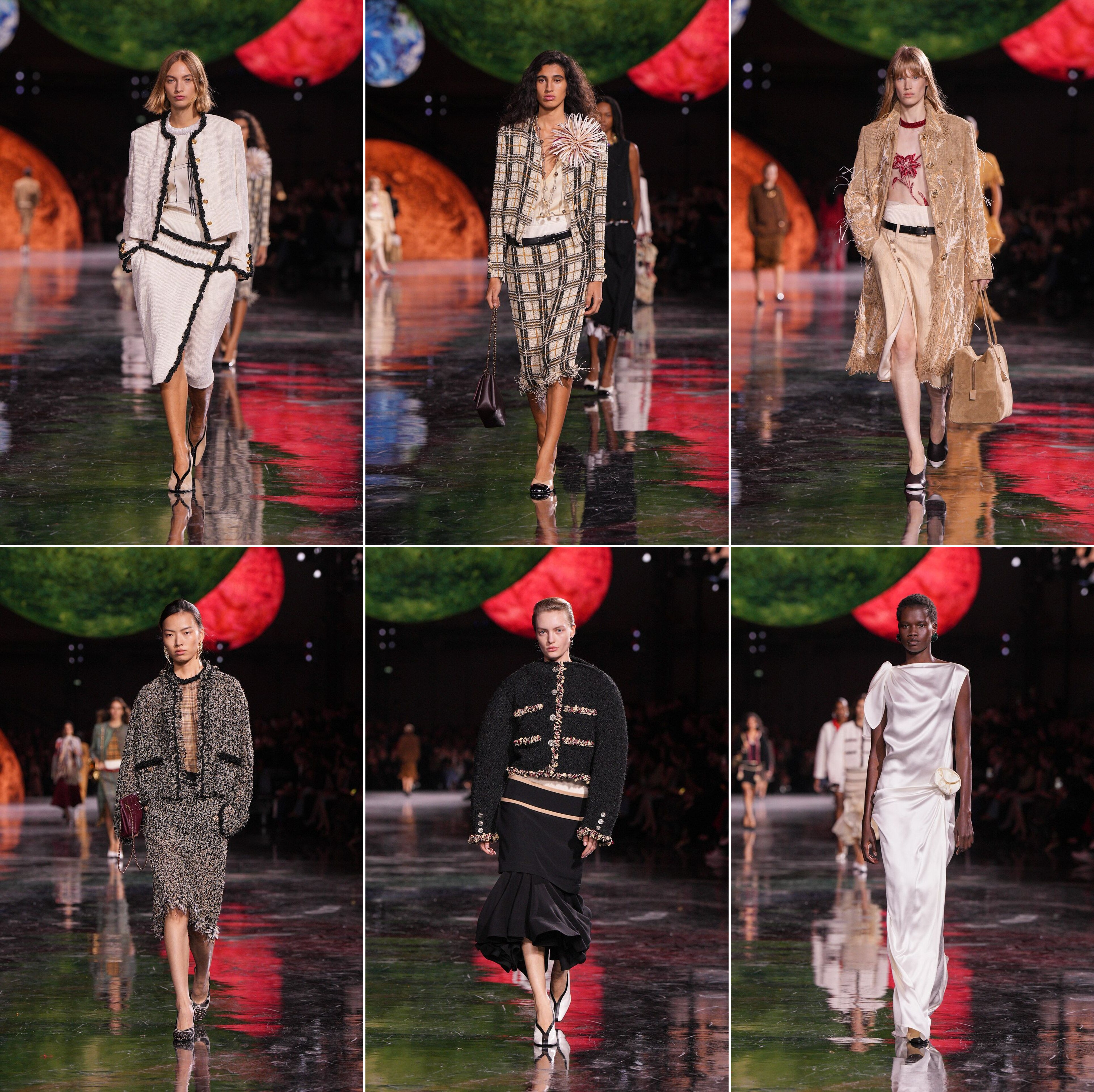 Accessories have always been integral to Chanel’s business. Despite the constant and aggressive post-COVID price increases of the bags and footwear, their appeal has never waned. Mr Blazy offered a rather staggering range of bags and shoes, fully aware of the category’s appeal. Standouts were the ovoid minaudière clutch, and the globular ones held by their chain straps, like a thurible. Some of the classic quilted bags were updated: one with the flap removed that looked more structured, others seemingly deconstructed to go with the slouchiness of clothes. And some, totally un-Chanel, such as the rectangular bag with colour-blocked panels that had more than a whiff of the ’70s about it. For the shoes, it was hard to see clearly, given how swiftly the models walked, but obvious was one pair of pumps that looked it morphed from bowling shoes. The accessories were not merely updated, they reflected the attitude that shall wear them: unburdened.