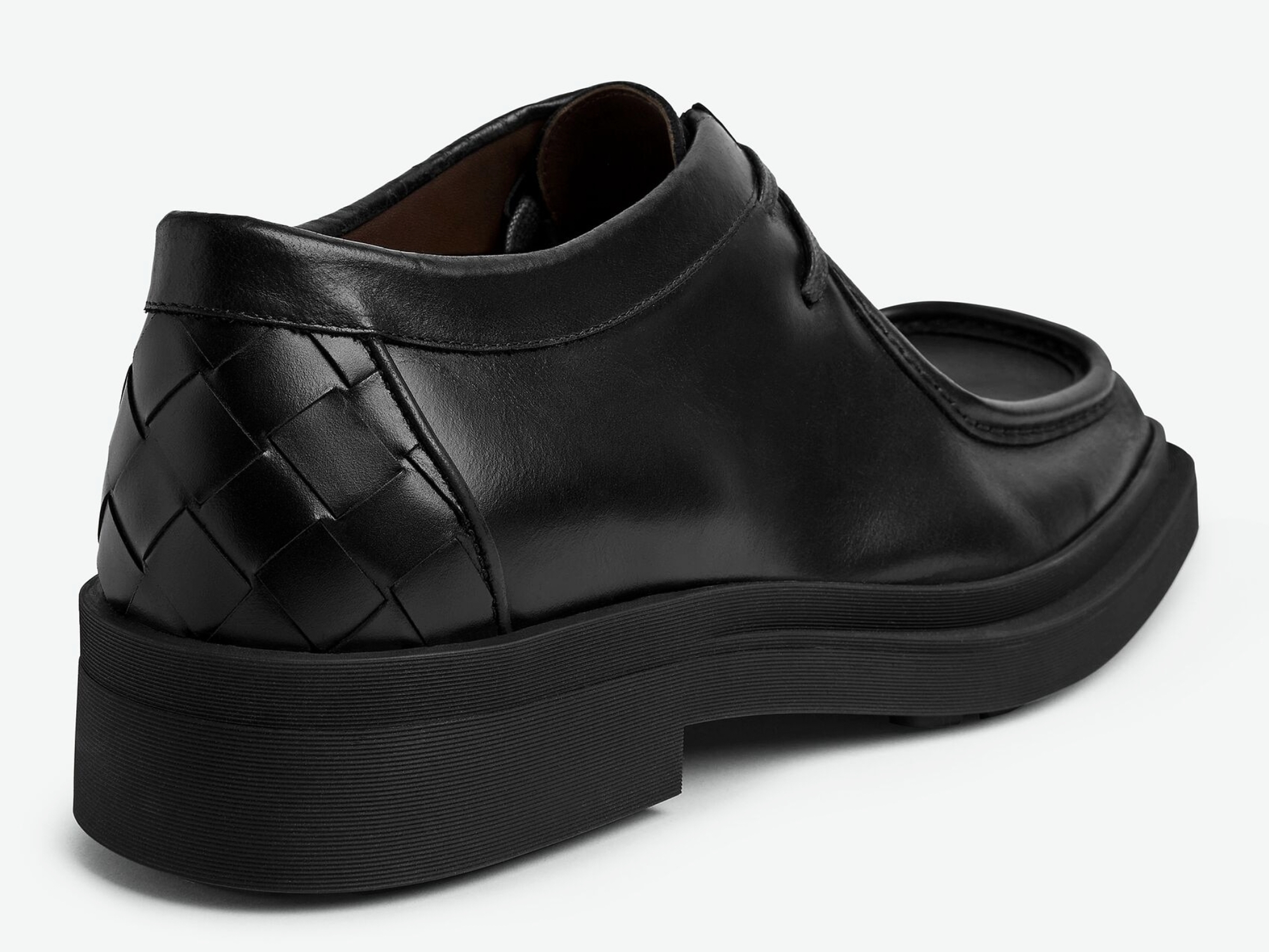 Bottega Veneta keeps the house Intrecciato on a discreet part of this shoe