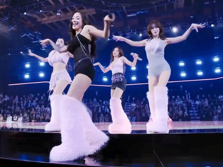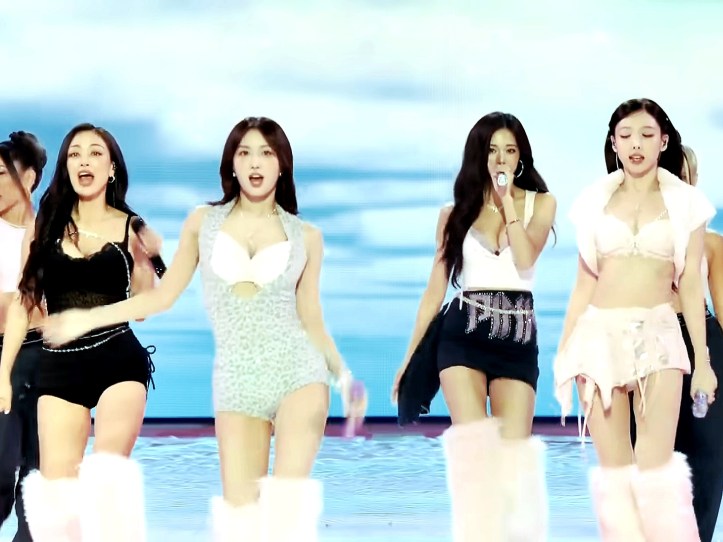 Twice is a K-pop group, appreciated for its polished, precise, and emotionally calibrated performances. Here was the first K-pop girl group to perform at the show, a move Victoria’s Secret clearly intended as a global validation of its new, diverse platform. Yet, on the its stage, Switch weren’t just performing as themselves—they were performing within a fantasy that wasn’t theirs. Twice’s brand of sensuality is rooted in cute-sexy duality (or sexy-cute), a choreography of charm, playfulness, and emotional nuance. Their performances often balance flirtation with sincerity, and their appeal is built on relatability, not raw seduction. For VSFS, their costumes were recontextualized to fit the show’s emotional grammar: in-you-face sexiness. The girls were not performing K-pop—they were performing compliance with a legacy fantasy.