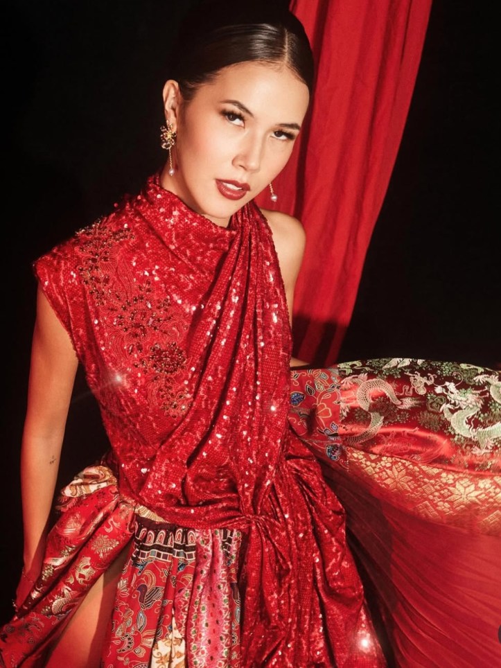 Cross-cultural pollination in dress is nothing new when we look back at what we have worn. The Peranakans are a prime example of cultural fusion, and their wardrobes filed that report, too, and strikingly. Their amalgam of Chinese embroidery, Malay silhouettes, European lace all weave into a lived aesthetic of hybridity. But what makes it powerful isn’t just the vivid mix—it is the intimacy of that mix. These garments aren’t designed to perform multiculturalism for a global audience; they are worn in kitchens, at birthdays, at weddings, and during the lunar new year. They carry emotional residue, not just symbolic intent. Miss Universe Singapore 2016 Cheryl Chou’s costume by Moe Kasim embodied that regret. In a pageant setting, it is hard to decide when such hybridisation is emotional inheritance or just visual asset.