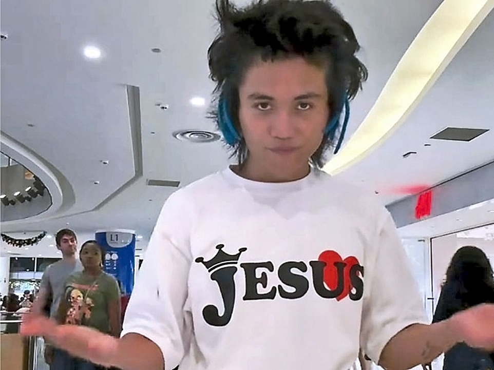 Johnson Wen did not just crash a promotional event, he also defiled a fashion moment, which to many was a rare cultural crescendo in our city. Dressed to the nine, the stars in attendance, including Michelle Yeoh and Jeff Goldblum, were a visual symphony of movie world glamour, poise and custom fashion. By contrast, Mr Wen executed his stunt in a grungy white T-shirt with the word ‘Jesus’ emblazoned across the chest and a crown atop the ‘J’ and a heart shape behind the ‘U’ and the ‘S’—presumably meaning King Jesus Loves—that was likely bought online than at a church yard sale, for around US$25 (or S$35,50). Amid Ms Grande’s Thom Browne, Ms Yeoh’s Iris van Herpen, Ms Erivo’s in Vivienne Westwood, and Mr Goldblum’s Dior, Mr Wen inserted himself in T-shirt with a biblical name that was crowned and hearted like a bootleg sermon. Did he think the son of god loved the grabbing of Ariana Grande mid-carpet?