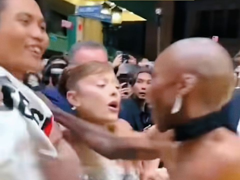 Johnson Wen, triumphantly hugged Ariana Grande while Cynthia Erivo forcibly pulled him away. Screen shot: TikTok