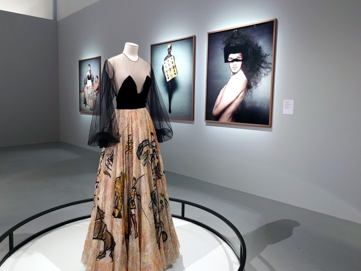 We can see that it’s hard to squeeze nearly 80 years of Dior into a six-dress exhibition that can be completed in ten minutes, and stretched over three days, but this was the toile rather than the complete garment of a show. If you were hoping to do a deep dive into haute couture, this is barely the CliffsNotes—summary. Instead of gowns, the exhibition leaned on Carine Roitfeld’s styled photographs. Couture became imagery, not fabric, even less, construction. Carine Roitfeld isn’t really required to curate; she’s there to credentialise. The icing on the cake that nobody eats anyway. Her name carries the aura of Vogue Paris and the high-gloss world of fashion publishing. “Curated by Carine Roitfeld” is a press release hook that distracts from the fact that the exhibition is six dresses and walls of photos and memorabilia. A gesture toward couture without the full weight of it.