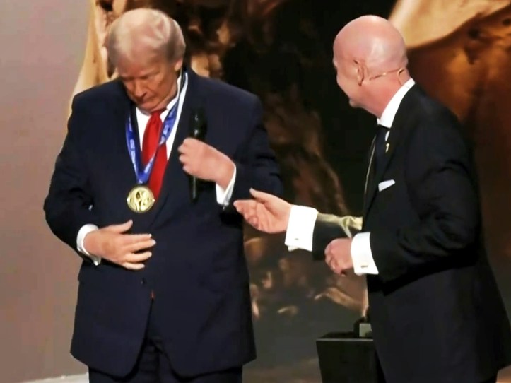 You did not realise the bottom had a basement, but, apparently, it did. It is where desperation reside, where it found the perfect opportunity to emerge for the world to see. In a wonderful development for world peace, FIFA—yes, the football association—has invented a new “peace prize”, one with no historical weight or intellectual tradition behind it. This is not to be mistaken for the one the Norwegian Nobel Committee awards yearly, which Donald Trump has been desperate to win, but lost to Venezuela’s Maria Corina Machado. This is a football accolade, a free goal by fluke. And it was just awarded to the most deserving: Donald Trump, of course. In a ceremony held at the John F. Kennedy Center for the Performing Arts (ready to be renamed), FIFA president Gianni Infantino presented the award, in the form of a medallion, to the clearly-eager awardee. This is probably the best Christmas present he has ever received. It’s a genuine shame it can’t be worn as a cap, which is his usual sole requirement for sartorial high value, provided it’s red and can proclaim a slogan.
