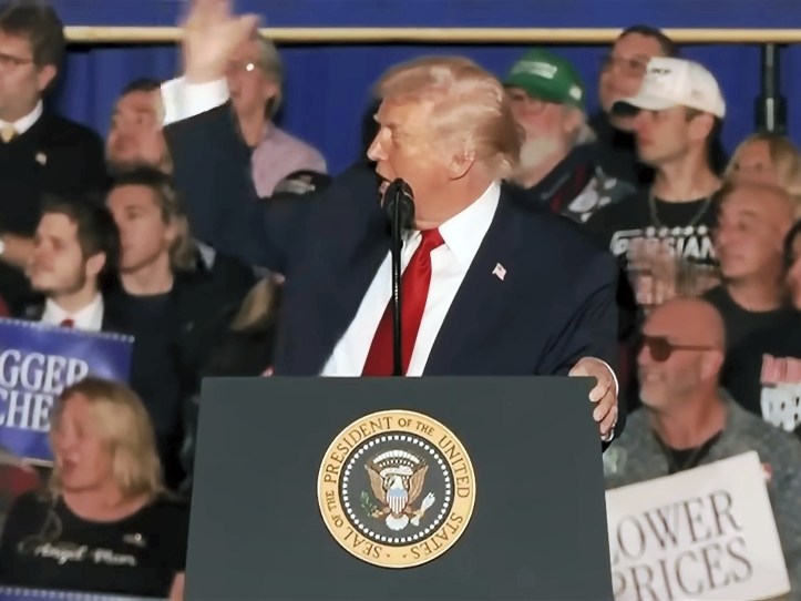 Donald Trump calling Karoline Leavitt during his speech at the recent Pennsylvania rally. Screen shot: theindependent/YouTube