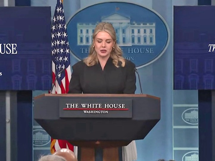 Karoline Leavitt at the most recent press briefing. Screen shot: ap/YouTube