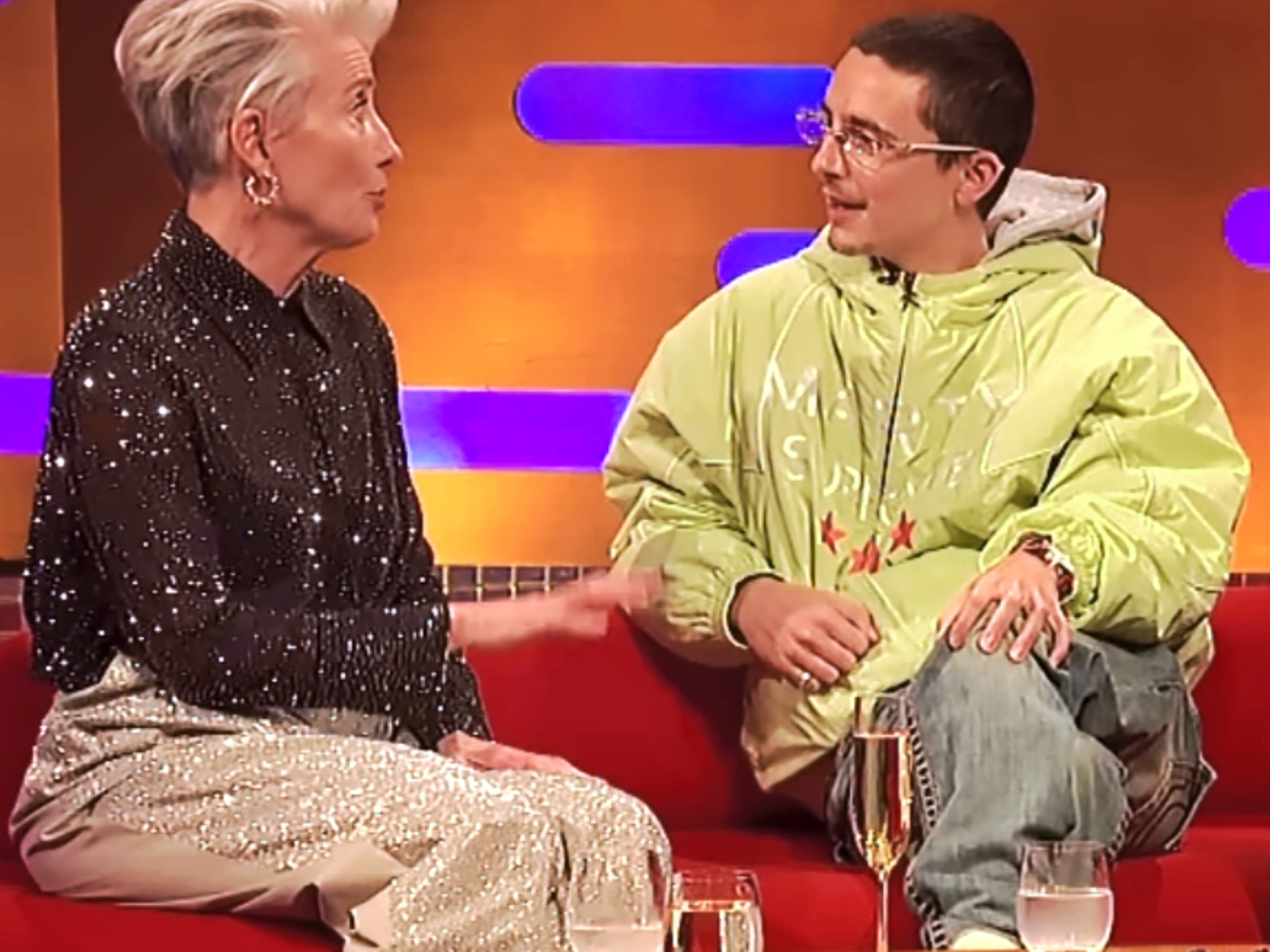 Timothée Chalamet with Emma Thompson on the Graham Norton Show. Screen shot: officialgrahamnorton/YouTube