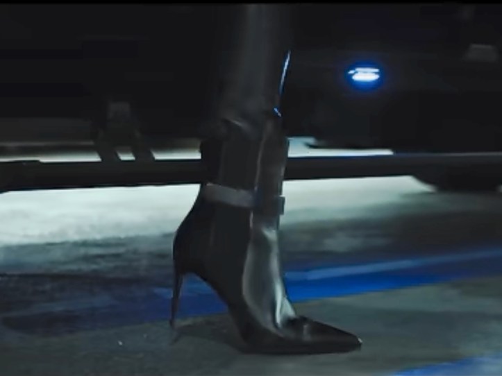 It’s really about heels. Very high heels. Vertiginous, as footwear specialists would call them. The trailer for the U.S. first lady’s documentary Melania was just released, and one of the most striking images from that is a close-up shot of her alighting a vehicle and stepping on what seems to be the tarmac in a heeled ankle boot. Yes, just one side—right, traditionally, a symbol of strength and fortune. The provenance of boot is unclear, but it is unmistakably sheath-like footwear with very sharp, filiform heel, which we estimate to be a about 4 inches (or 100 milimetres). We know Melania Trump loves boots. She’s worn knee-highs, she’s embraced combat styles, she’s even strutted in Timberlands. So it is unsurprising that she would make the boots a signature look, a piece of footwear that is framed to look incongruent against the side panel (or running board) of the vehicle and the tarmac, a surface many of us have no privilege to be on.