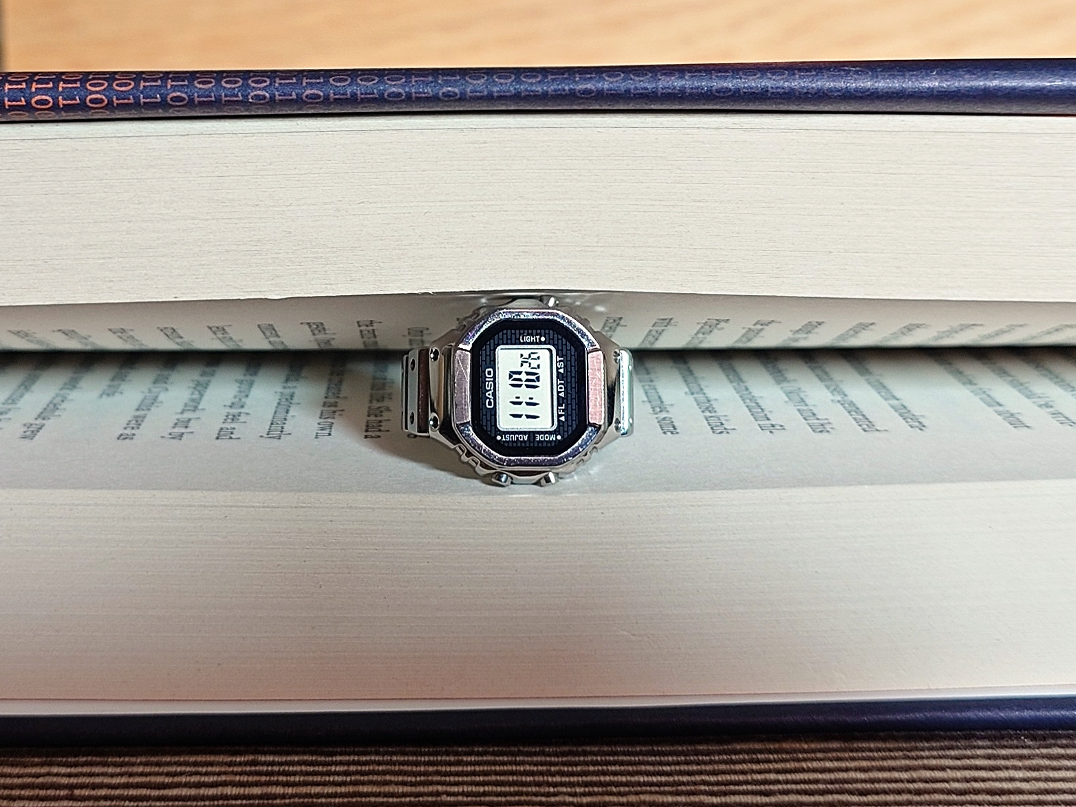 On the Casio website, we are told that the ring-watch (here, it’s the CRW-001G-9) comes only in one size and fits a 22-sized finger (or a circumference of 62.8 mm), which would be perfect for me, but I wasn’t sure how snugly it would hold on to my finger (the forth). As it turns out, it fits, perfectly. But looking at it on my finger, I’m not sure it would have the longevity of a wedding band. Don’t get me wrong. This watch is smart (it even offers dual time!) and it is fun to wear a full-face timepiece on the finger, but this is not Casio’s chatbot-as-furry companion, Moflin. And it simply fails to spark that same electric, nerdy dopamine hit I felt when I strapped on the C-80 all those years ago—back when owning a calculator watch made you feel less like a student and more like Bond meeting Q to arm up. Still, there is an odd satisfaction in looking at my knuckles rather than on my wrist to see if I would be late for lunch.