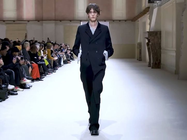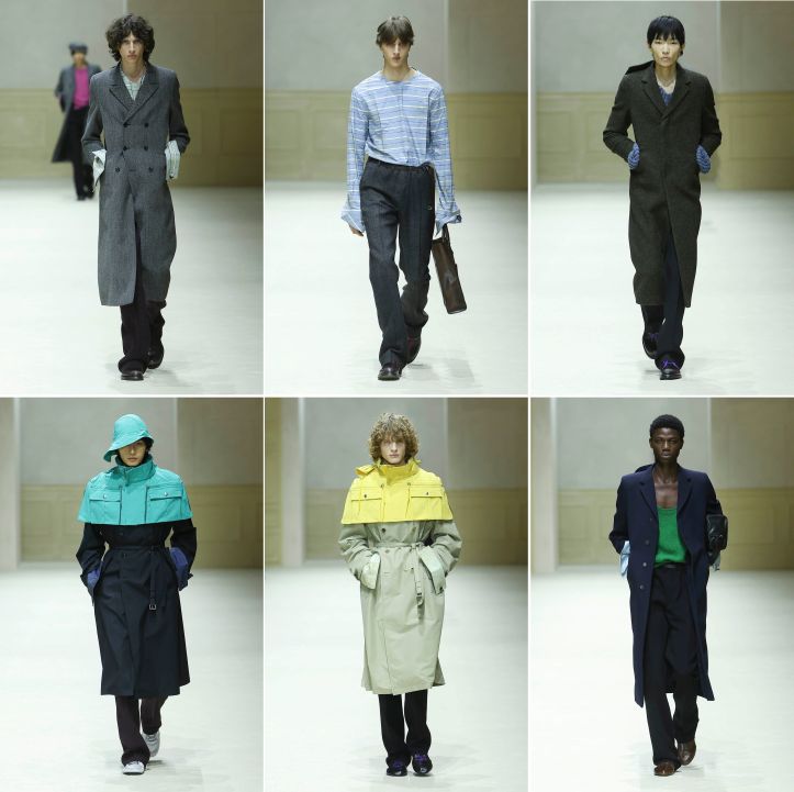 After last spring/summer season’s footwear controversy—also referred to as “Kolhapuri-gate”—Prada shifted the attention of the latest collection, away from the feet and further up the body. This time, it was all about the wrist, or, to be more specific, the cuff. But not any barrel cuff you’d see in Raffles Place. Prada has chosen the more atas French cuff (also known as the double cuff), worn on the runway not folded back on itself, probably to challenge the traditional formality of the turn-back end of the sleeve. A wholly European tradition that won’t be an affront to any trade guild. Some of the cuffs were not pressed, some were scorched, as if to suggest the shirts to which they belong can be worn to tame an inferno. Naturally, links were required. Prada’s included dangly ones that could double as drop earrings. And to be sure that the seated front-row deities were aware of the details, the models strutted the runway with their hands tucked into the pockets of their coats, allowing the cuffs, with their contrasting colours, some easily mistaken for welts of coat pockets, to be seen at eye level. In retail, they call it “buy level”—accessible, relatable, and for them VVIPs.