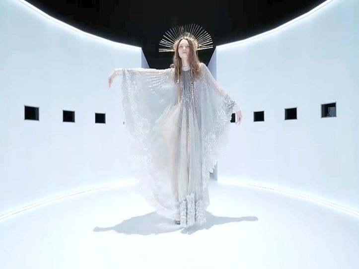 In Valentino’s peep booth—a dozen of them, squares of glassed-up peep holes are positioned across the curved wall in a linear manner. The viewers alternately pressed their faces or smartphone against them to view the reveal within. The models emerged and pose (or whatever you might wish to call their physical display) for visual consumption. By replacing the 3D glass slides of the original kaiserpanorama with live models, Mr Michele turned a 19th-century educational tool into a human/peacock menagerie. By sitting the world’s most powerful fashion folks in dark spaces outside the booth, bodies against the wall, to peep at models through framed holes, he made them act out the reality of their jobs or desires. Fashion is, at its core, a ‘looking’ industry, so is social media. He took away the polite pretenses and made it feel like a secret, private gawk. He turned the kaiserpanorama from a ‘world-viewing’ machine into a sartorial safari—or at least, a very expensive way to morph the elite of couture week into peepers. The only thing thinner than the models was the line between connoisseur and common stalker.