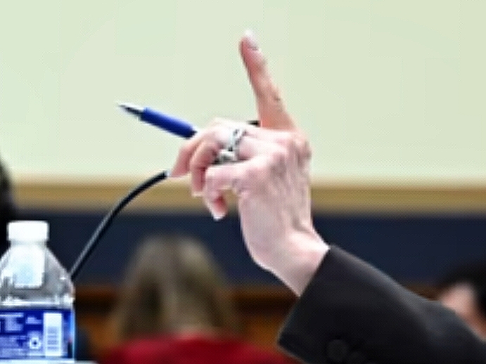 To make sure that her finger and her hand retained all the dexterous advantage that she intended them to wield, Ms Bondi wore almost no jewellery except on her ring finger. This was a sharp contrast to the unmissable finger-and-wrist adornments she adopted at her first senate hearing last October. There was now a hint of what could be a watch, but otherwise, she was quite bare-handed. When she held up her palm or wagged that finger, the viewer wasn’t looking at a diamond protrusion or a gold band, not even all-out nail art or colour, but at the authority of the office. The finger, in particular, worked as a rebuke that beautifully accompanied her retaliation. Typically, a witness at a congressional hearing is expected to be deferential. By wagging her expressive finger and using sharp retorts (calling her interrogators “washed-up”), Ms Bondi was signalling that she refused to accept the traditional subordinate role of a witness. Her hands were stripped of jewellery and her nails of bold colour to ensure nothing outshone her sparkling indignation. Shucked for the skirmish.
