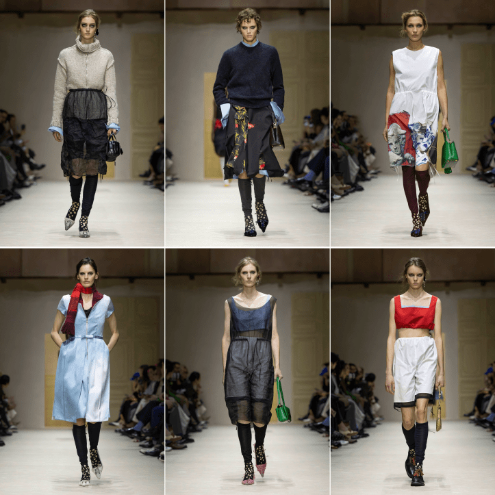 In Milan, sheerness, even when it’s biting cold, is apparently a thing. Or in six months’ time, it will be. It’s a curious reversal of looks versus climes that we have talked about before. First, Maria Grazia Chiuri showed unlined lace for Fendi, leaving panties to enjoy maximum exposure and, as a result, the expected derision. And then now you have Prada. The revelation at both houses couldn’t be more different. Prada has no concerns with the seeming preference for the reveal of underpants, even if they did lingerie in the past. What they have done is to use sheer, almost gauzy, fabrics like they would any other they’d use—as actual garments worn with others. There was sheer under, on top, and sheer between. There were used in any part of the laters. The diaphanous fabrics were treated like fillings of sandwiches—any able assembler would concur that meat does not have to be on top.