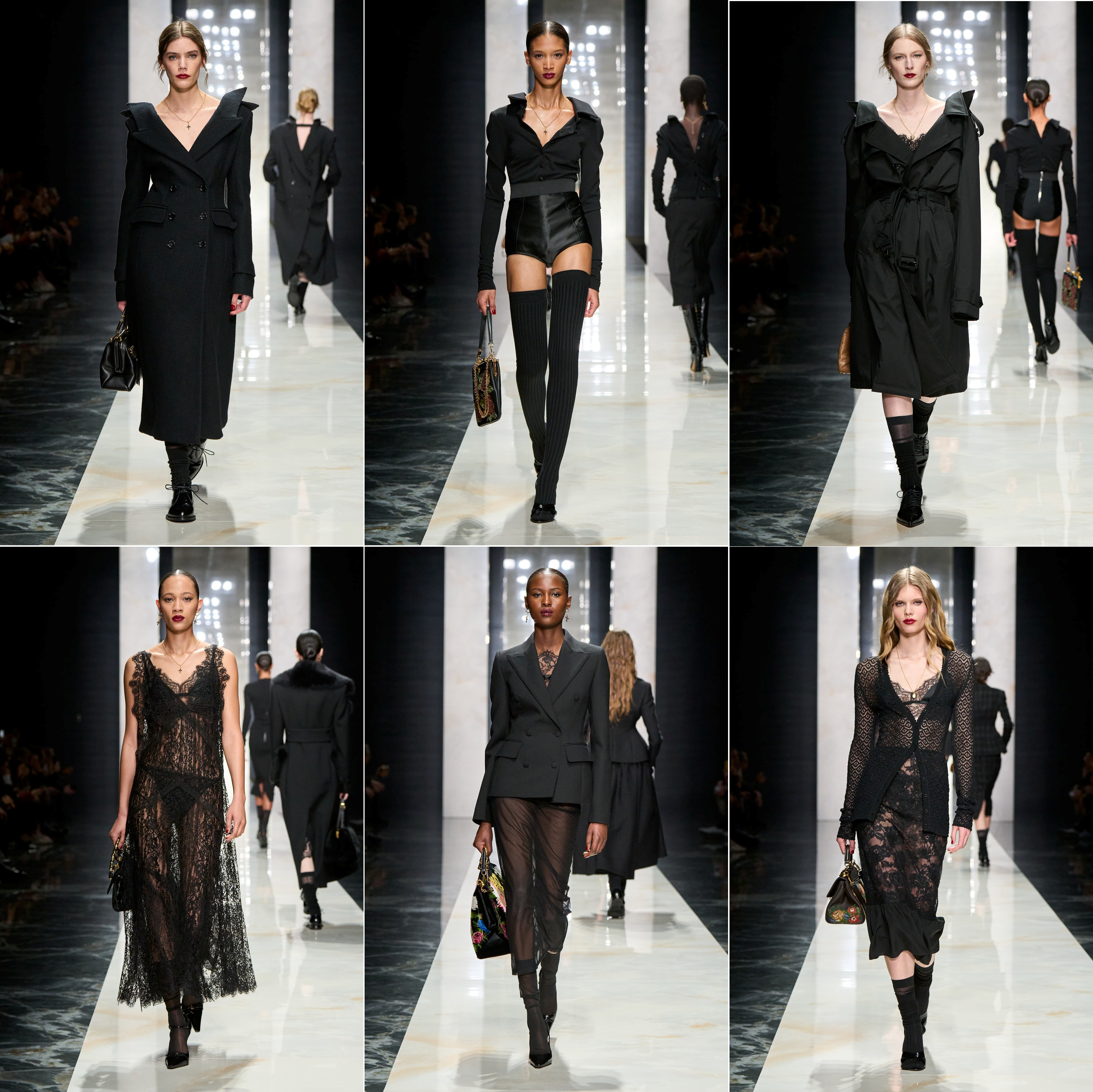 Dolce and Gabbana had the misfortune to show their latest collection as the news of the death of the Supreme Leader of Iran appeared on news feeds throughout the show grounds, surprising no one, except that it was this soon. It was a predominantly black collection. A touch of clairvoyance?