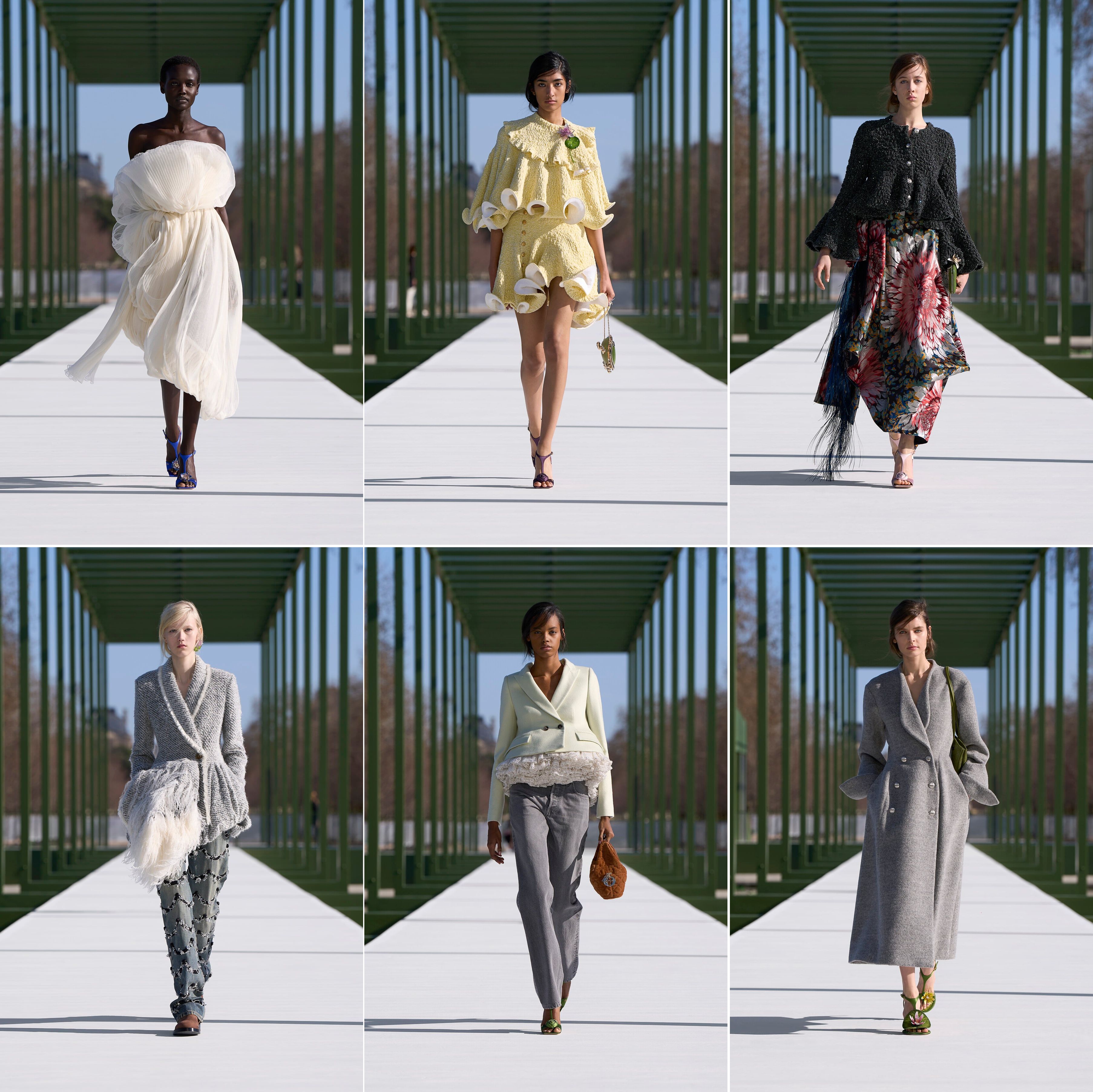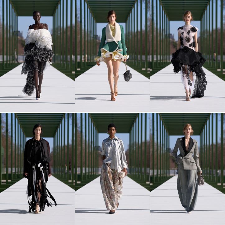 But can a Bar jacket survive being stuffed from the waist down with petaled layers to make the wearer appear expectant? Or a poufed shawl-jacket with a waist that, on the right, looked like a burst of pistillate flowers infected by mealybugs? Or peplums that would need the cooperation of Ozempic and her sisters to behave? To be certain, the collection had its specimen blooms and hybrid vigour, but most of these flounced-up indulgences were strictly one-night stands—destined for a grand entrance and, later, a date with The RealReal. Reviving the peplum and the bustle, we suspect, would risk nostalgia fatigue. The silhouettes, frankly, reminded us of Nicolas Ghesquière’s professional past. Rather than pushing Dior’s codes forward, Jonathan Anderson’s horticultural wet dream, framing Paris as a pleasure garden, reflected an outsider’s romanticising of the city. It is a manufactured mirage, dramatizing fashion’s reliance on artifice to keep the conversation going. The sun, it seemed, was smiling because it knew it was the only thing in the Tuileries that day that didn’t need a Dior label to be baroque.