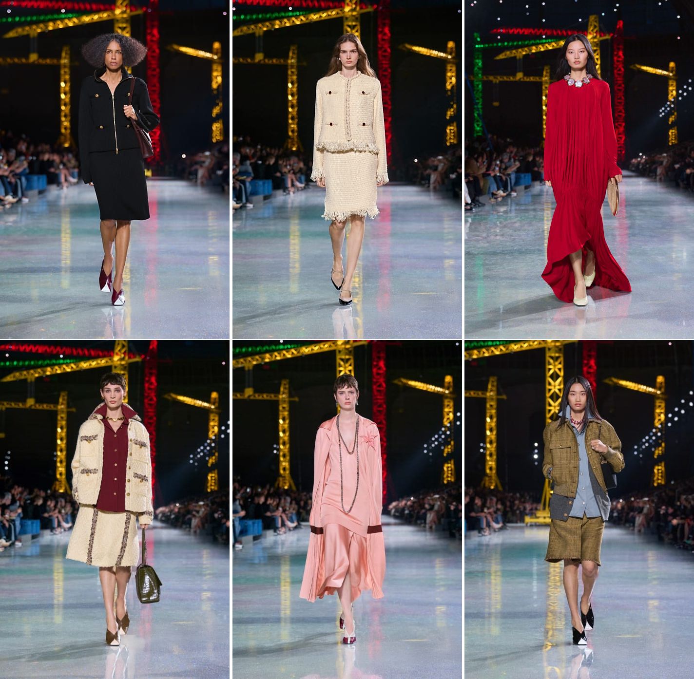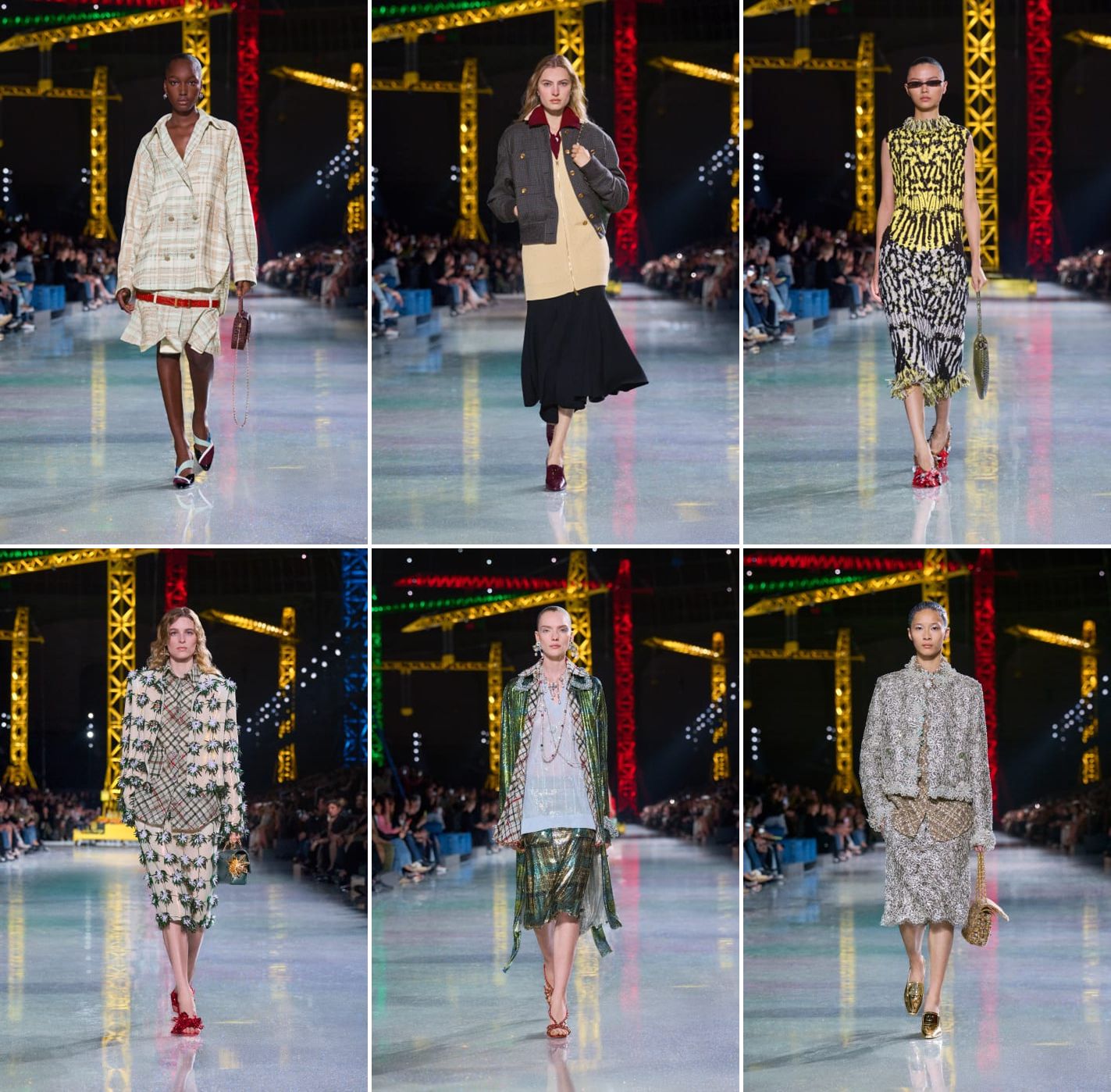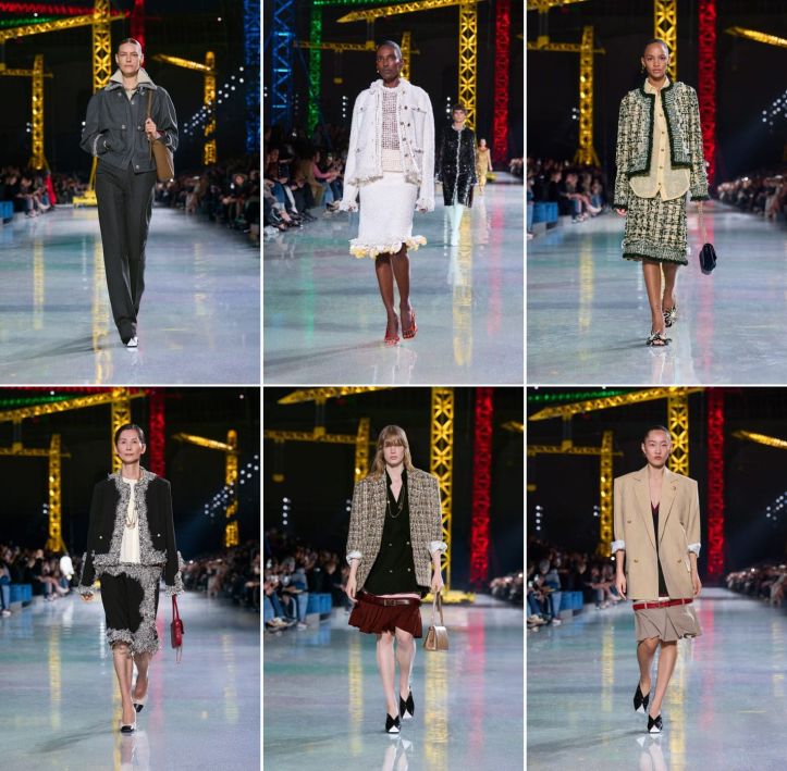 The work-in-progress messaging couldn’t be clearer. But it’s not Carhartt, it’s Chanel. For his sophomore RTW collection, Matthieu Blazy turned fashion’s most historic temple—the Grand Palais —into a pristine, high-gloss construction site, featuring towering cranes, but inoperable, in cheerful primary colours, as if borrowed from a Disney theme park, and curiously accompanied by searchlights. It effectively stripped the machinery of its grit and replaced it with a sense of Mickey-friendly industrial levity. Some people read the scenography as “rebuilding” the Chanel legacy. But could Chanel, the century-old institution, be a worksite? Or charm as if the house were a half-finished condo? The most transgressive it had tried to pretend to be was sell its show grounds as a supermarket. After the couture’s manifestation of magic mushrooms, this was perhaps back to neon reality.