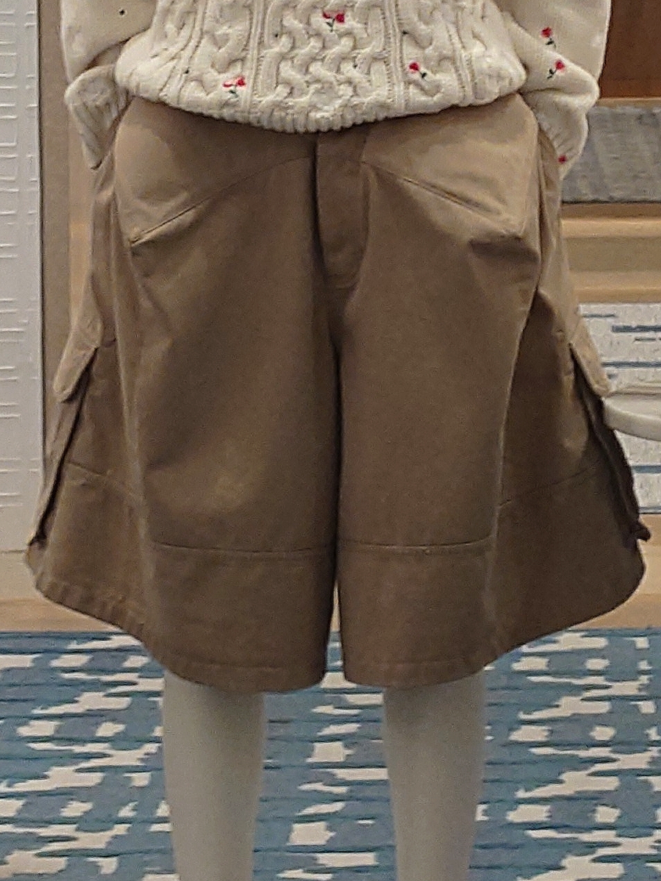 Better still, it was something wearable—the La Cigale as it was called. For sure, it was not the Delft, not even a close cousin. Yet it held its own, beckoning. We were immediately drawn to the shape. It was slightly tented, but not enough to make it a ‘skort’. There were the cargo pockets (placed askew)—utilitarian and assuring, so that guys would not think they were wearing something unmanly. But what would they make of the centre-right and left, about the same level of the hips, that were two pointy protrusions? They’re bulges that should not be there. A seam-as-dart across the crotch ended at a point on each side. Behind them were paddings, as if misplaced Bar jacket hip augmentations. From the profile, the shorts looked like a brassiere had slipped down there.