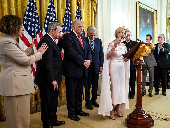 At the White House Easter Lunch, held on April Fool’s Day, it was easy to mistake the prayerful proceedings for an elaborate joke. On stage, behind the rostrum fronted by a gold eagle, pastors, reportedly from different denominations, took their turn to pray for what a federal judge recently called the “Steward of the White House”, Donald Trump. The solemnity of the event of “a very holy week” was amplified by the glamorous appearance of Mr Trump’s so-called “personal spiritual advisor”, Paula White-Cain, a televangelist who mistakes bathing in the glare of her own spotlight for wearing a halo. Ms White-Cain attended the event in full State Dinner splendour. The pale pink, ankle-length dress was from the bespoke gown-maker Inna’s Designs. It was an almighty-approved choice that aligned with the Prosperity Gospel that Ms White-Cain fervently preaches, with a hemline that stopped just short of humility and a price tag—likely underwritten by the aspirational investments of those in challenging circumstances—that started well beyond salvation