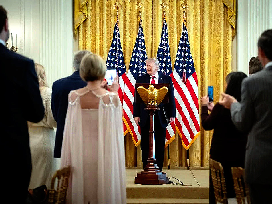 But Ms White-Cain lapped it up and thank the president. Soon, allegedly guided by the holy spirit, she faced Mr Trump and prayed deeply, “I declared that everything you touch, you’ll have the favour of god. According to Luke 2:52, even if Jesus was favoured with both god and man, so let it be with president Trump.” People are now calling that blasphemy. But the Jesus avatar smiled his bozo smile and said, visibly delighted, “Thank you.” Quoting Luke 2:52 did not validate her comparison. That verse is about Christ’s growth in wisdom, maturity, and divine favour during his youth, not martyrdom. Using it to frame Trump’s legal troubles stretched the text beyond recognition. Easter, even non-believers know, is about about resurrection, yet she cherry-picked a verse about youthful growth to match her sycophantic urges. Combined with her charismatic gala gown, with which American Made was the slogan, but elite immigrant atelier was the reality, the citation turned into a staged sermon—fashion and scripture deployed as props in the unceasing theatre that is the big, beautiful, war-mongering Trump administration.