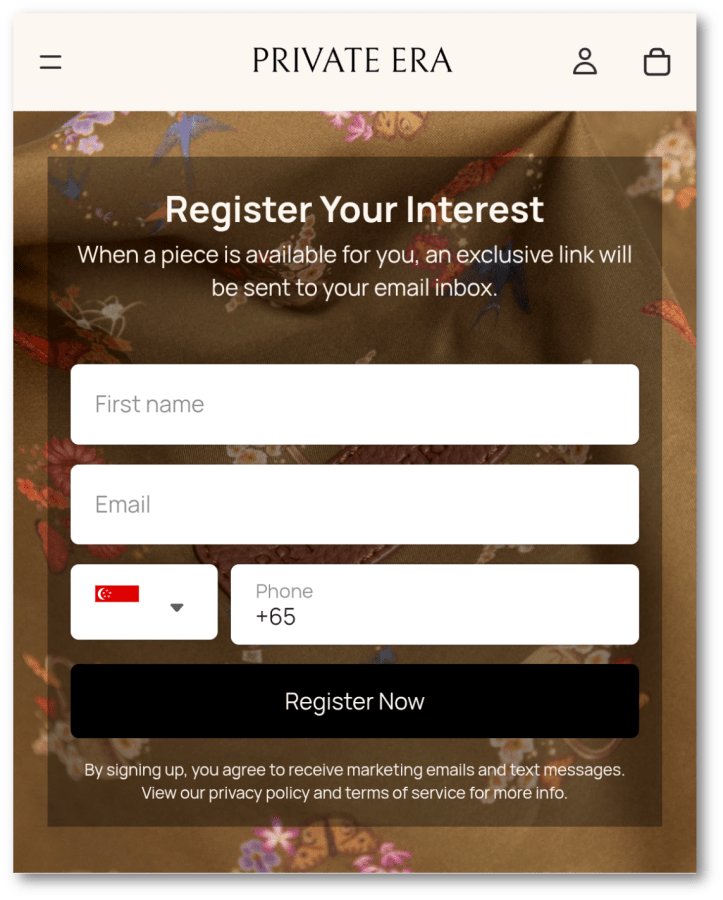 There is perverse genius in a brand that decides the ultimate pinnacle of retail strategy is to gatekeep its own existence behind a registration wall. You are greeted by the prominent command: “Register Your Interest”. Nothing, of course, relays hospitality quite like a digital velvet rope that demands your contact info just to prove you’re worthy of being spammed. It’s the digital equivalent of being invited to a party only to find out you have to fill out a credit check and provide three character references before the host will even unlock the front door. Above the web form, the brand dictates that “when a piece is available for you, an exclusive link will be sent to your email.” The failure’s on you if you’re not charmed yet. If you are not seduced by the exclusivity, it is not for lack of merit in the brand’s offerings, but a tragic failure of your own imagination.